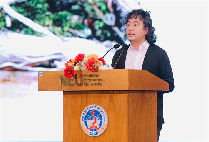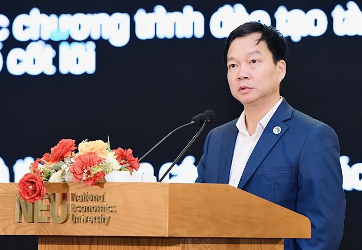 Phó Vụ trưởng Vụ Giáo dục Đại học Nguyễn Anh Dũng trình bày báo cáo một số nội dung về đào tạo và phát triển nguồn nhân lực công nghệ số