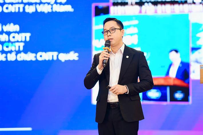 Ông Đỗ Thanh Bình, Giám đốc Hợp tác quốc tế, VINASA trình bày tham luận nhu cầu nhân lực CNTT, nhân lực công nghệ số
