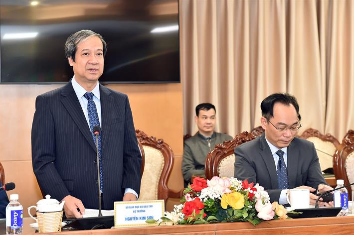 Chia sẻ về một số kết quả quan trọng trong ứng dụng công nghệ thông tin, chuyển đổi số đã được ngành Giáo dục triển khai trong thời gian, trong đó có sự hỗ trợ, phối hợp của Ban Cơ yếu Chính phủ, Bộ trưởng Nguyễn Kim Sơn tin tưởng quan hệ phối hợp giữa hai bên sẽ tiếp tục chặt chẽ, hiệu quả hơn nữa trong thời gian tới.