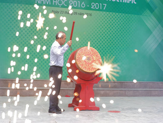 Thứ trưởng Bộ GD&ĐT Nguyễn Vinh Hiển đánh hồi trống phát động