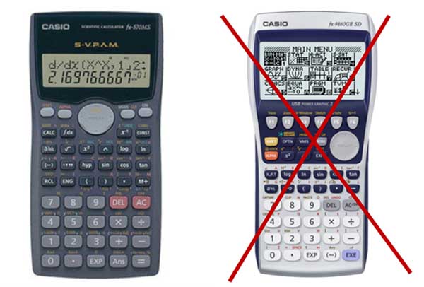 Hình minh họa: máy tính bỏ túi được mang vào phòng thi (bên trái)