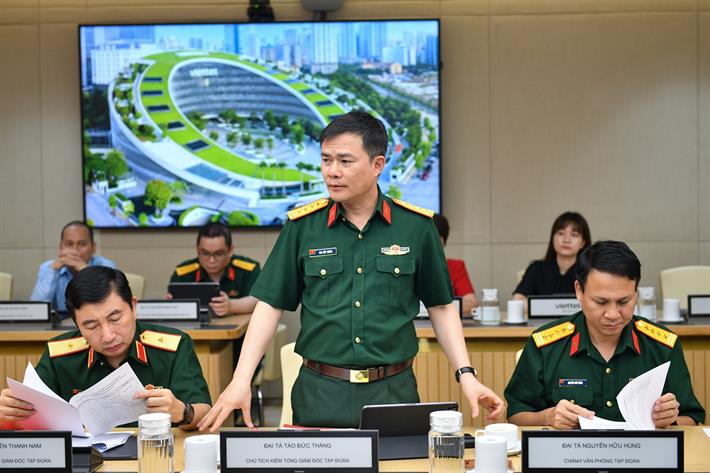 Làm việc với đoàn có Chủ tịch kiêm Tổng Giám đốc Tập đoàn Viettel Tào Đức Thắng, Phó Tổng Giám đốc Tập đoàn Viettel Nguyễn Thanh Nam cùng lãnh đạo các Ban, đơn vị thuộc Tập đoàn.