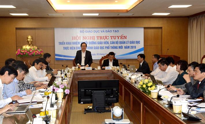 Trao đổi tại Hội nghị, đại diện lãnh đạo các Sở GD&ĐT cơ bản nhất trí với kế hoạch tổ chức bồi dưỡng giáo viên, cán bộ quản lý giáo dục triển khai chương trình GDPT mới năm 2019. Tuy nhiên, một số địa phương bày tỏ băn khoăn về thời gian tổ chức bồi dưỡng, vì thời điểm tháng 4, 5, 6 trùng với thời gian kết thúc năm học và tổ chức Kỳ thi THPT quốc gia.