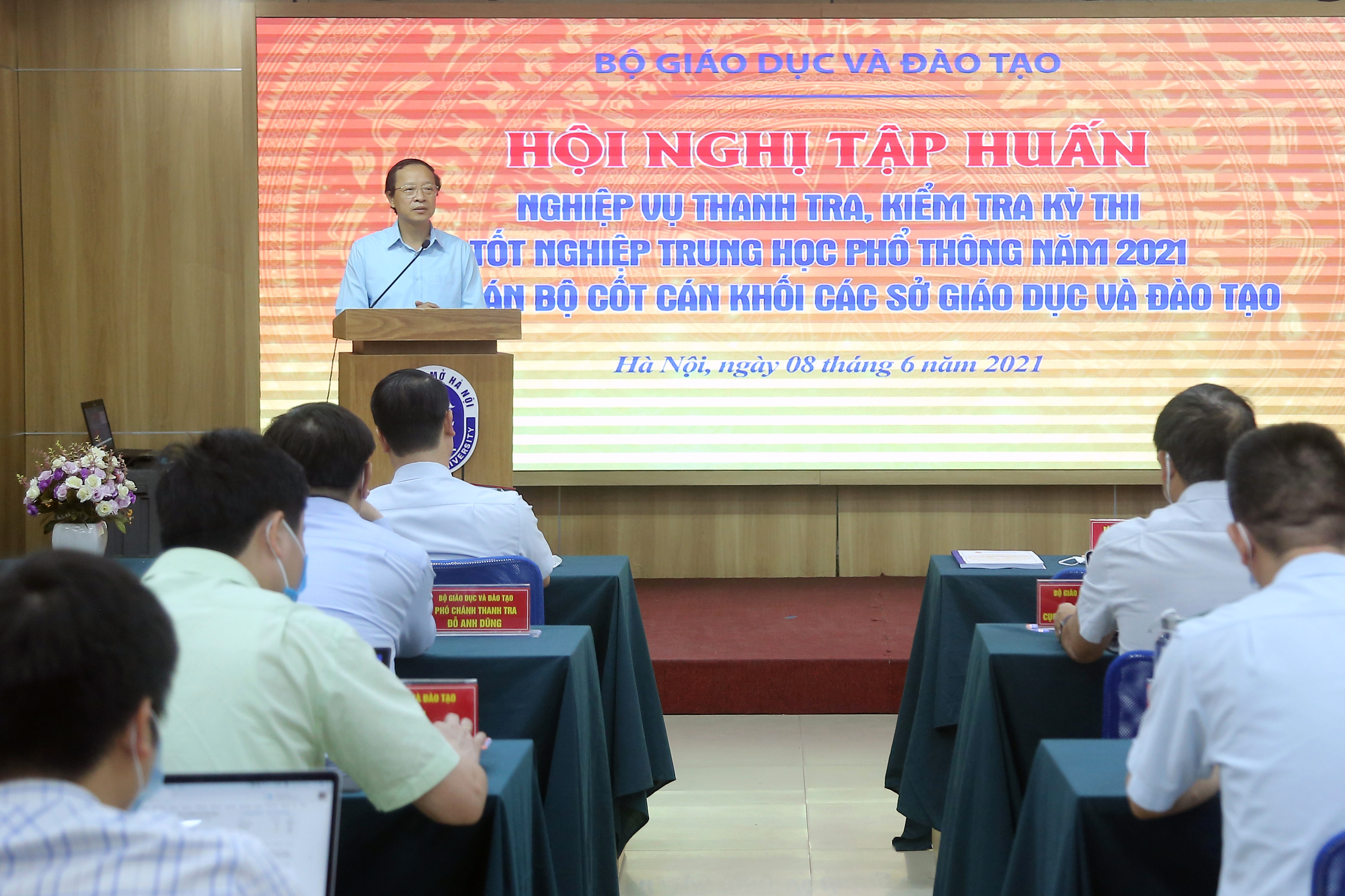 Thứ trưởng yêu cầu, sau hội nghị, các Sở GDĐT tùy theo tình hình, điều kiện về cơ sở vật chất, diễn biến dịch bệnh để tổ chức tập huấn cho tất cả các cán bộ tham gia công tác thanh tra, kiểm tra của địa phương với mục tiêu, yêu cầu 100% cán bộ công chức, viên chức tham gia vào công tác thanh tra, kiểm tra kỳ thi phải được tập huấn, phải được đánh giá và nắm chắc tất cả các nội dung, quy trình, kỹ năng, nghiệp vụ của công tác thanh tra, kiểm tra.