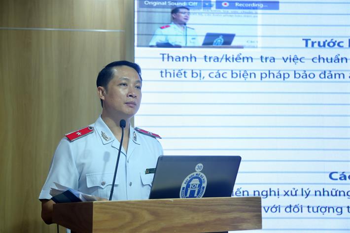 Chánh Thanh tra Bộ GDĐT Nguyễn Đức Cường trình bày báo cáo hướng dẫn công tác thanh tra, kiểm tra Kỳ thi tốt nghiệp THPT 2021