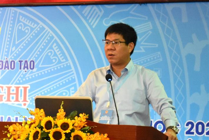 Chánh Thanh tra Bộ GDĐT Nguyễn Đức Cường báo cáo tại Hội nghị