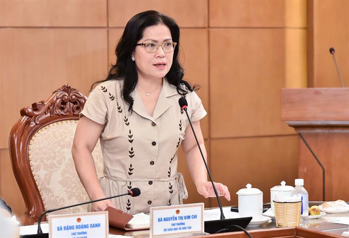 Thứ trưởng Bộ GDĐT Nguyễn Thị Kim Chi phát biểu tại cuộc làm việc
