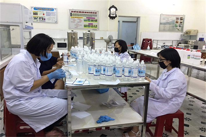 Trường chế tạo nước rửa tay khô diệt khuẩn phục vụ cho cán bộ, viên chức, người lao động và sinh viên toàn Trường.