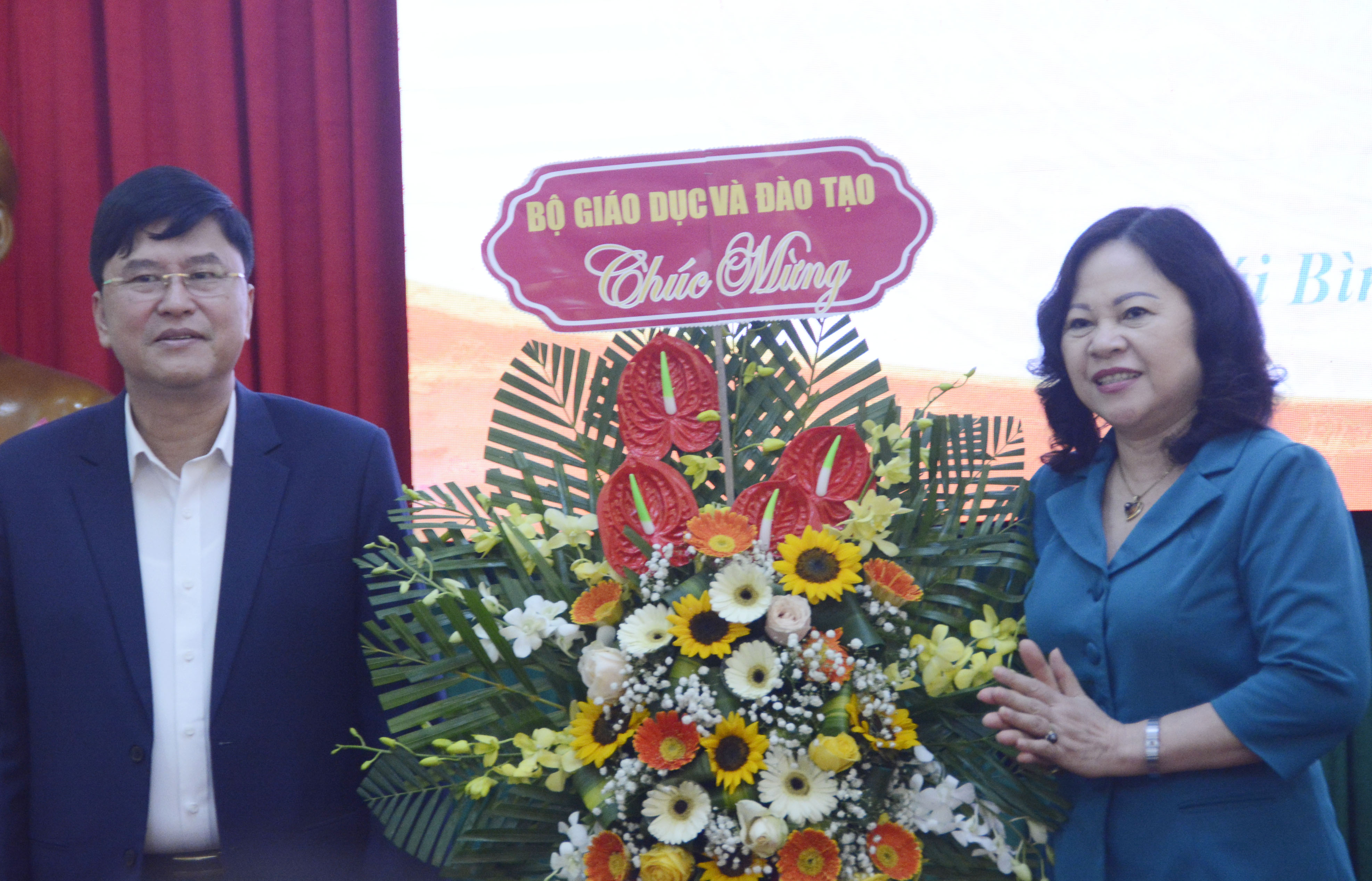 Thứ trưởng Ngô Thị Minh tặng hoa chúc mừng hội nghị