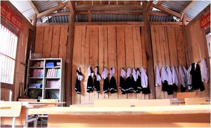 Những lớp học của Trường TH Nậm He dù dựng bằng vách gỗ, lớp mái tôn