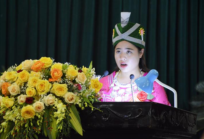 Cô giáo Sung Thị Tông, Trường Mầm non Sơn Thủy chia sẻ tại Hội nghị