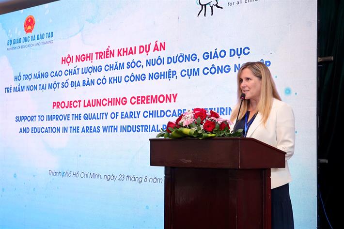 Bày tỏ vinh dự khi được đồng hành cùng Chính phủ, Bộ GDĐT, bà Morgan Hurley Lance, Tổng Giám đốc kiêm Trưởng Văn phòng đại diện tổ chức OneSky tại Việt Nam, khẳng định, dự án “Hỗ trợ nâng cao chất lượng chăm sóc, nuôi dưỡng, giáo dục trẻ mầm non tại một số địa bàn có khu công nghiệp, cụm công nghiệp” thể hiện sự quan tâm sâu sắc của Chính phủ cũng như OneSky, mong muốn mang đến cho các em nhỏ không chỉ môi trường chăm sóc an toàn, mà còn là một nền giáo dục mầm non chất lượng, nuôi dưỡng sự ham học hỏi, khuyến khích sự sáng tạo và chuẩn bị cho hành trang vững vàng cho các em bước vào bậc tiểu học.