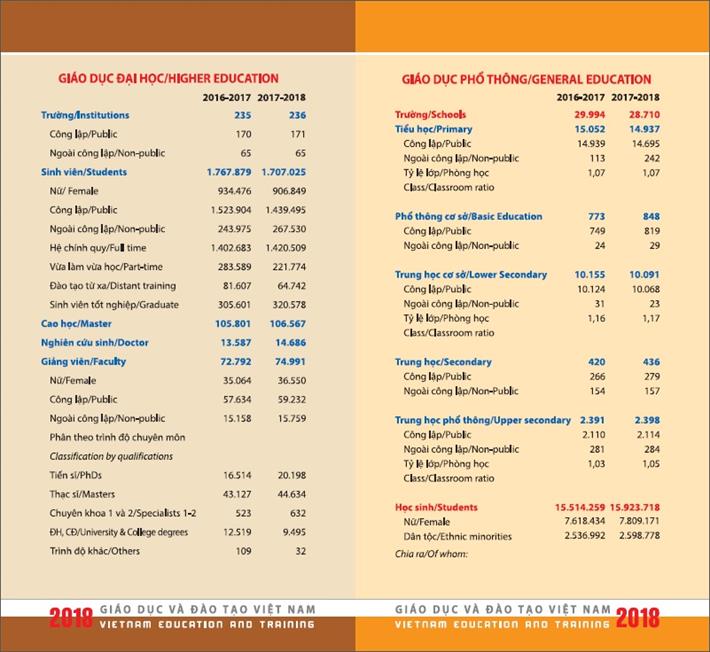 Thứ tư, 13/03/2019 | 00:00 A- A A+ | Tờ gấp giáo dục đào tạo năm 2018 Nguồn số liệu được Văn phòng - Bộ Giáo dục và Đào tạo thống kê năm học 2017-2018. moet.gov.vn 2 lượt xem Tin cùng chuyên mục Tờ gấp giáo dục đào tạo năm 2018 Tờ gấp giáo dục đào tạo năm 2017 Tờ gấp giáo dục và đào tạo năm 2016 Tờ gấp giáo dục và đào tạo năm 2015