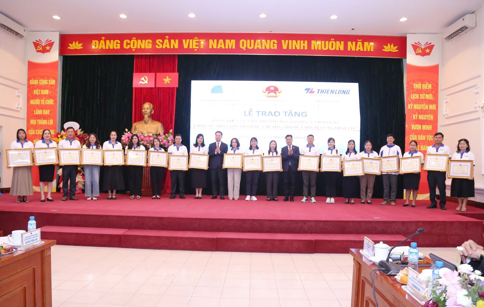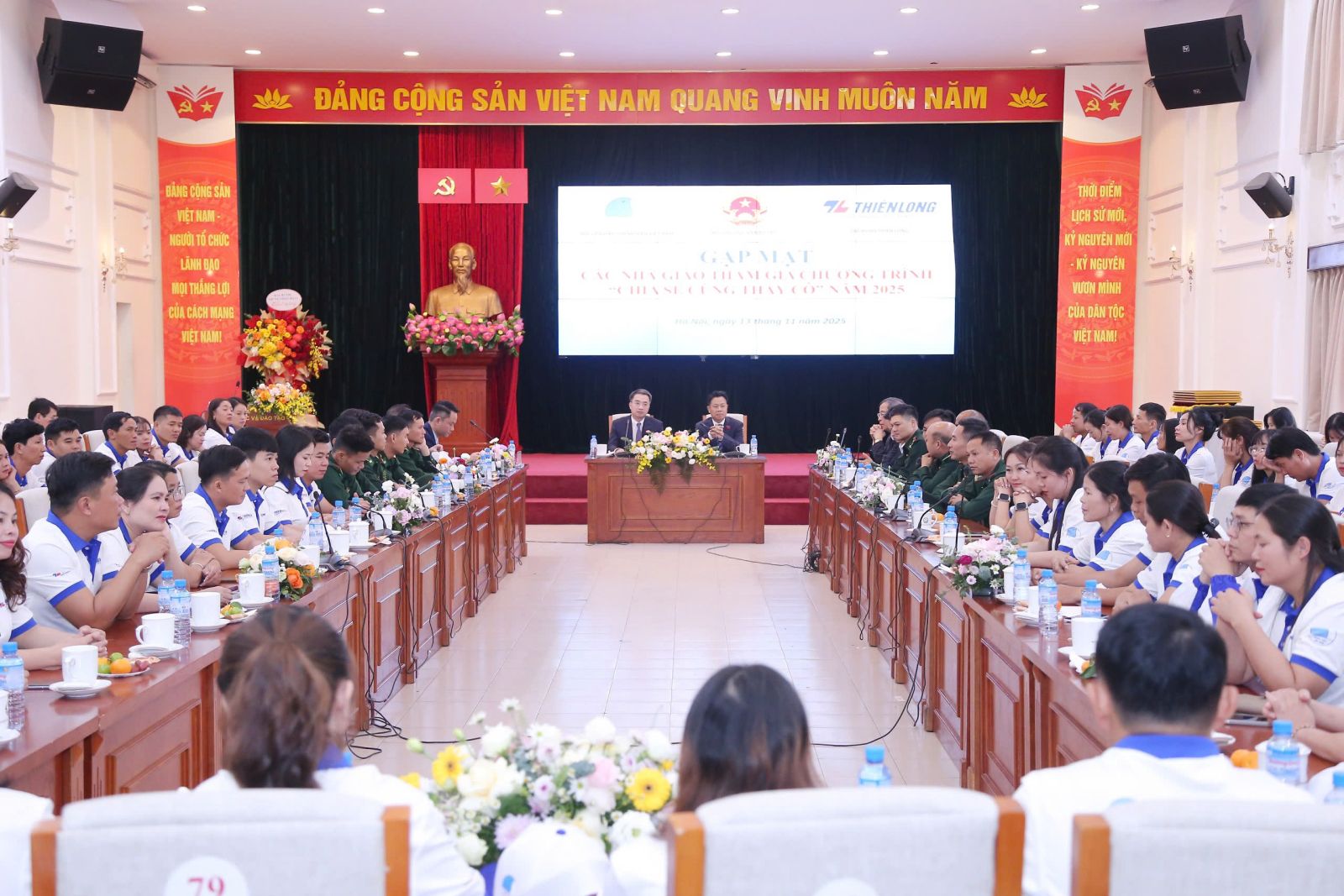 Chiều 13/11, tại Hà Nội, Bộ Giáo dục và Đào tạo (GDĐT), Trung ương Hội Liên hiệp Thanh niên Việt Nam và Tập đoàn Thiên Long tổ chức buổi gặp mặt 80 nhà giáo tiêu biểu toàn quốc trong chương trình “Chia sẻ cùng thầy cô 2025”.