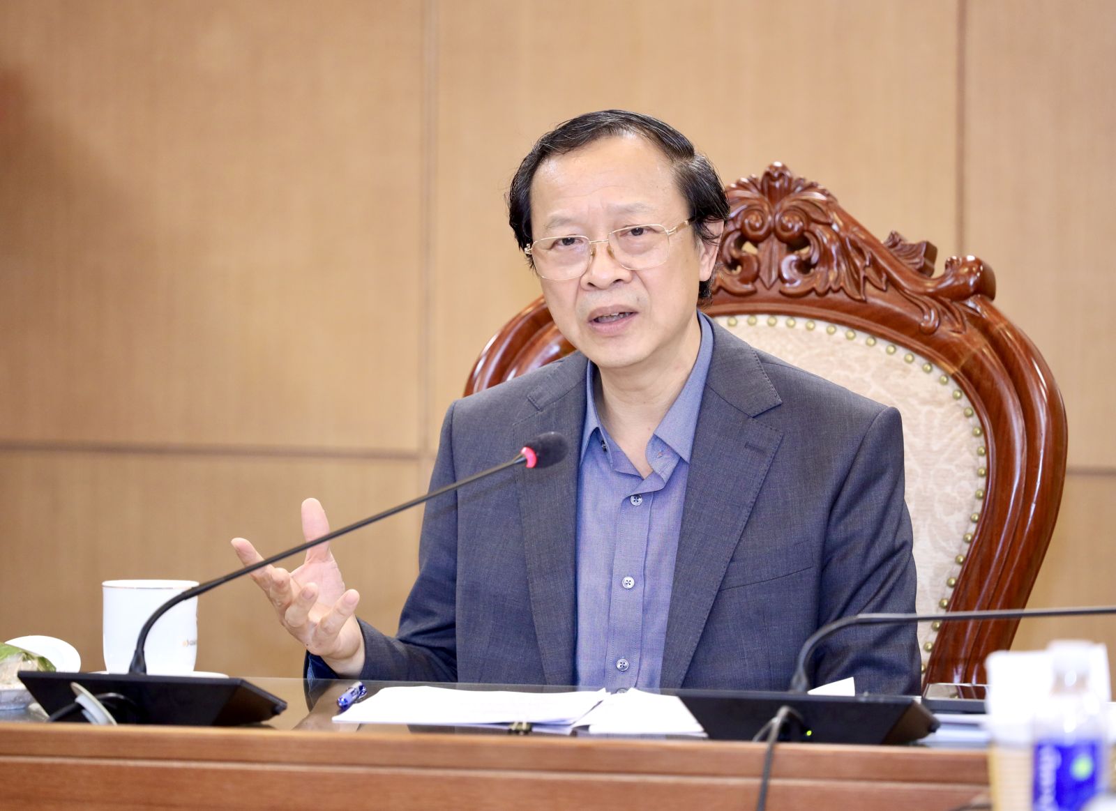 Thứ trưởng Thường trực Phạm Ngọc Thưởng phát biểu tại buổi làm việc