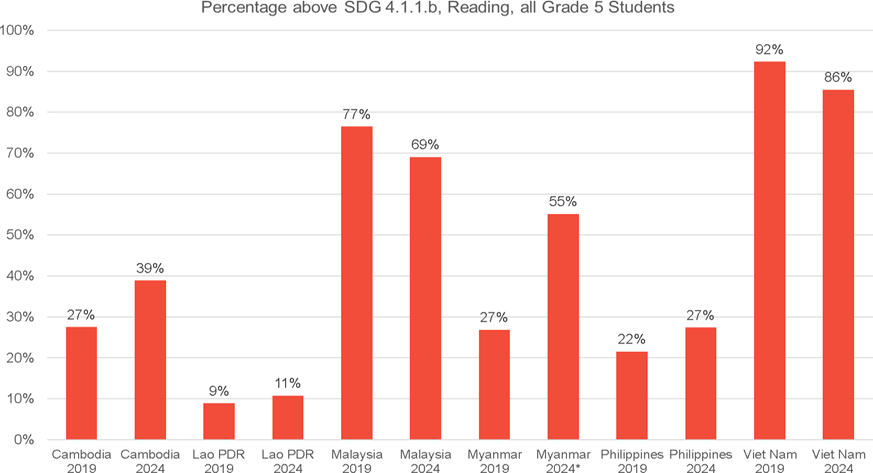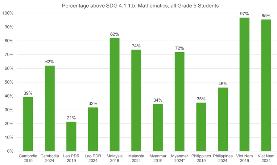 Theo báo cáo được công bố bởi Ban Thư kí SEAMEO cho thấy học sinh lớp 5 ở khu vực có giữ ổn định kết quả Đọc hiểu và tăng lên một tỉ lệ nhỏ ở kết quả Toán học.