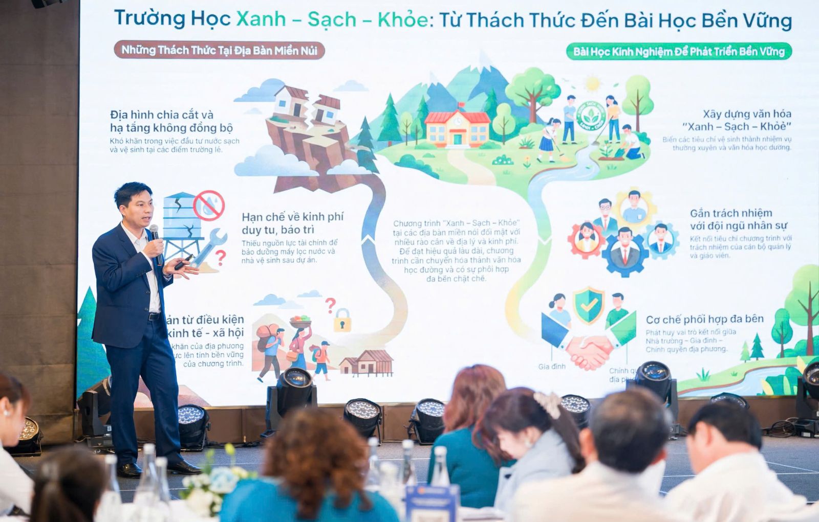 Các địa phương cần nhìn nhận việc cải thiện hạ tầng vệ sinh, nước sạch là một phần trong chỉ tiêu đánh giá chất lượng trường học. Đề nghị các nhà trường có cơ chế quản lí, bảo trì định kì đối với các hạng mục đã được hỗ trợ. Phải đảm bảo rằng mỗi nhà vệ sinh sạch sẽ, mỗi nguồn nước an toàn là quyền lợi chính đáng mà mọi học sinh đều được hưởng.