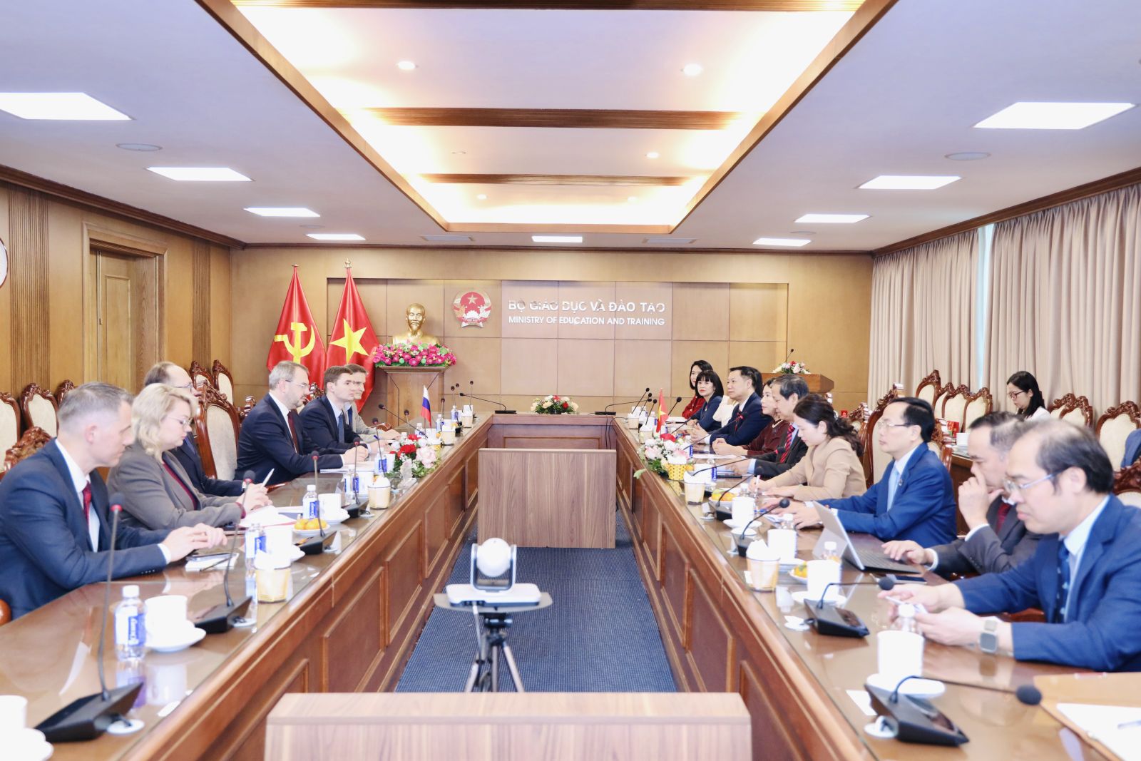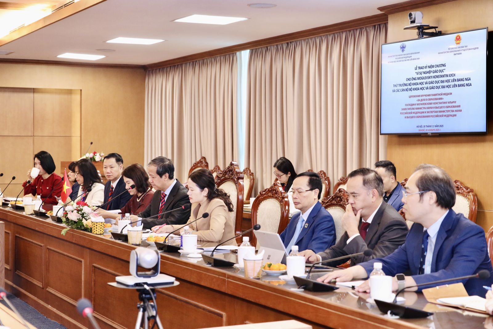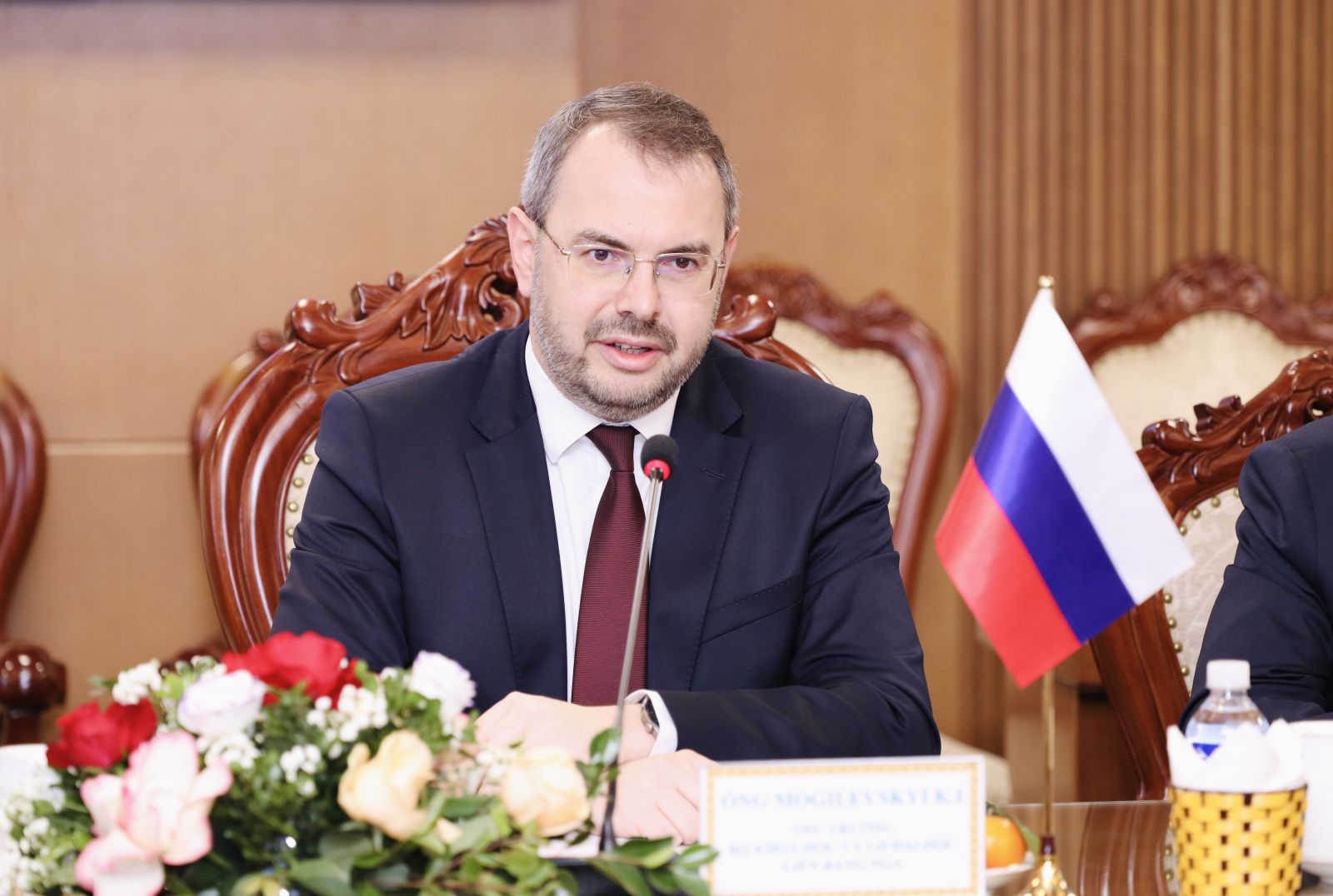 Bộ trưởng ghi nhận vai trò trực tiếp và hết sức quan trọng của Thứ trưởng Mogilevsky Konstantin Ilyich trong việc thúc đẩy hợp tác giáo dục giữa hai nước cùng nhiều sáng kiến phát triển hợp tác nhân văn, giảng dạy tiếng Nga tại Việt Nam.