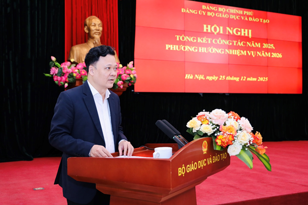 Tại hội nghị, Phó Bí thư Đảng ủy Bộ GDĐT Nguyễn Viết Lộc đã trình bày báo cáo tổng kết công tác Đảng năm 2025 và triển khai phương hướng, nhiệm vụ trọng tâm năm 2026. Báo cáo nhấn mạnh vai trò lãnh đạo, chỉ đạo của Đảng ủy Bộ trong hoàn thiện thể chế, tháo gỡ các điểm nghẽn, tạo nền tảng cho những đột phá trong phát triển giáo dục và đào tạo.