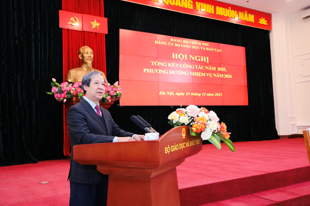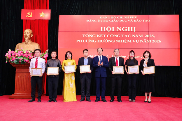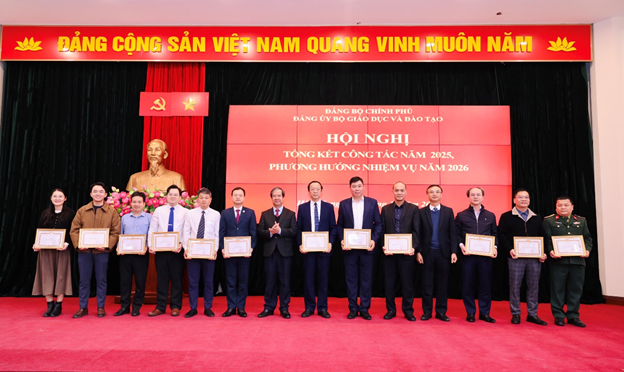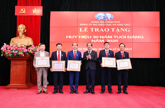Chiều ngày 25/12, Đảng ủy Bộ Giáo dục và Đào tạo (GDĐT) tổ chức Hội nghị tổng kết công tác Đảng năm 2025, triển khai phương hướng, nhiệm vụ năm 2026; đồng thời tổ chức Lễ trao tặng Huy hiệu 30 năm tuổi Đảng và công bố các quyết định khen thưởng đối với tổ chức đảng, đảng viên năm 2025.