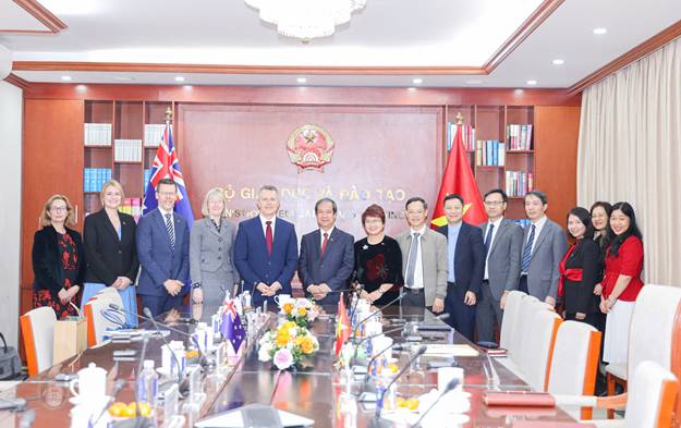 Ngày 11/12, tại trụ sở Bộ Giáo dục và Đào tạo (GDĐT), Bộ trưởng Nguyễn Kim Sơn đã tiếp và làm việc với Bộ trưởng Bộ Giáo dục Australia Jason Clare nhân dịp đoàn công tác Australia thăm và làm việc tại Việt Nam. Đây là chuyến thăm đầu tiên của Bộ trưởng Bộ Giáo dục Australia đến Việt Nam sau hơn 20 năm, thể hiện sự coi trọng của Australia đối với hợp tác giáo dục – đào tạo giữa hai nước.