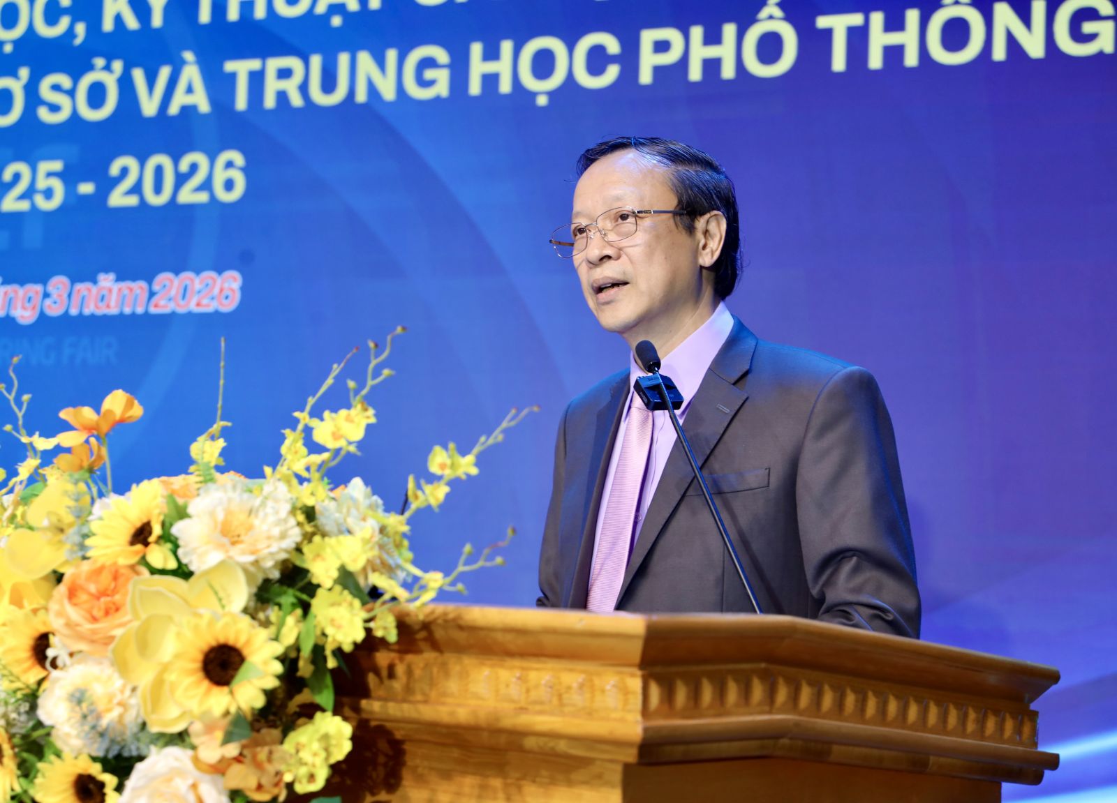 Phát biểu tại buổi lễ, Thứ trưởng Thường trực Phạm Ngọc Thưởng cho biết: 13 năm qua, Bộ GDĐT tổ chức Cuộc thi KHKT cấp quốc gia dành cho học sinh THCS, THPT. Điều đó là minh chứng cho việc Bộ GDĐT nói riêng, toàn ngành Giáo dục nói chung đang hướng tới mục tiêu giáo dục toàn diện về đức, trí, thể, mĩ và trong đó, kịp thời nắm bắt xu hướng của thế giới, đột phá, đổi mới về khoa học, công nghệ, đổi mới sáng tạo. Điều này càng được đặc biệt tin tưởng và vững tâm hơn khi có Nghị quyết 57-NQ/TW về đột phá phát triển khoa học, công nghệ, đổi mới sáng tạo và chuyển đổi số quốc gia.