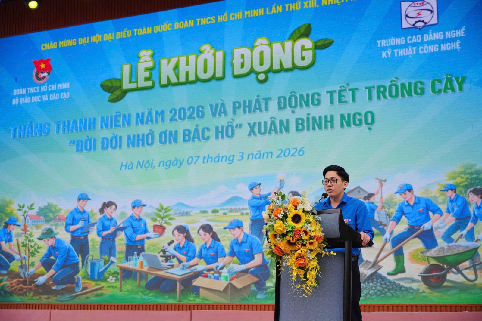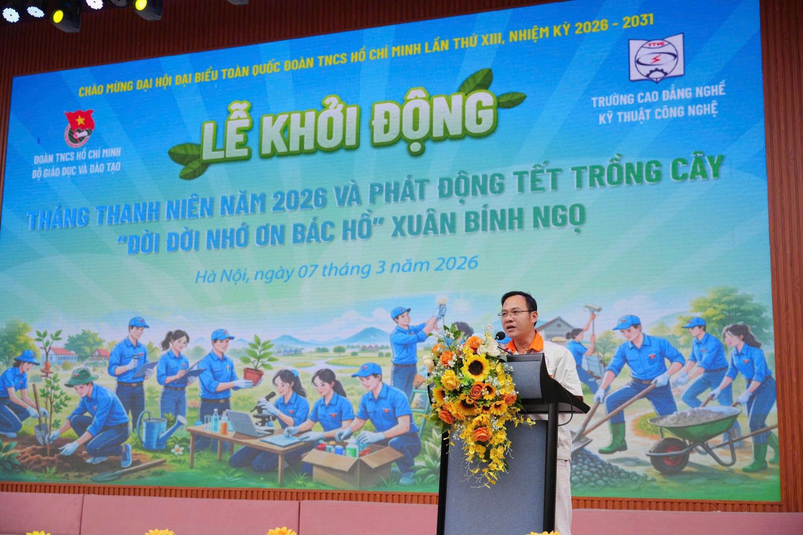 Hòa chung không khí hướng tới kỷ niệm 95 năm Ngày thành lập Đoàn TNCS Hồ Chí Minh (26/3/1931 – 26/3/2026), ngày 7/3, tại Trường Cao đẳng Nghề Kỹ thuật Công nghệ, Đoàn Thanh niên Bộ Giáo dục và Đào tạo (GDĐT) tổ chức Lễ phát động Tháng Thanh niên năm 2026 và Tết trồng cây “Đời đời nhớ ơn Bác Hồ” xuân Bính Ngọ.