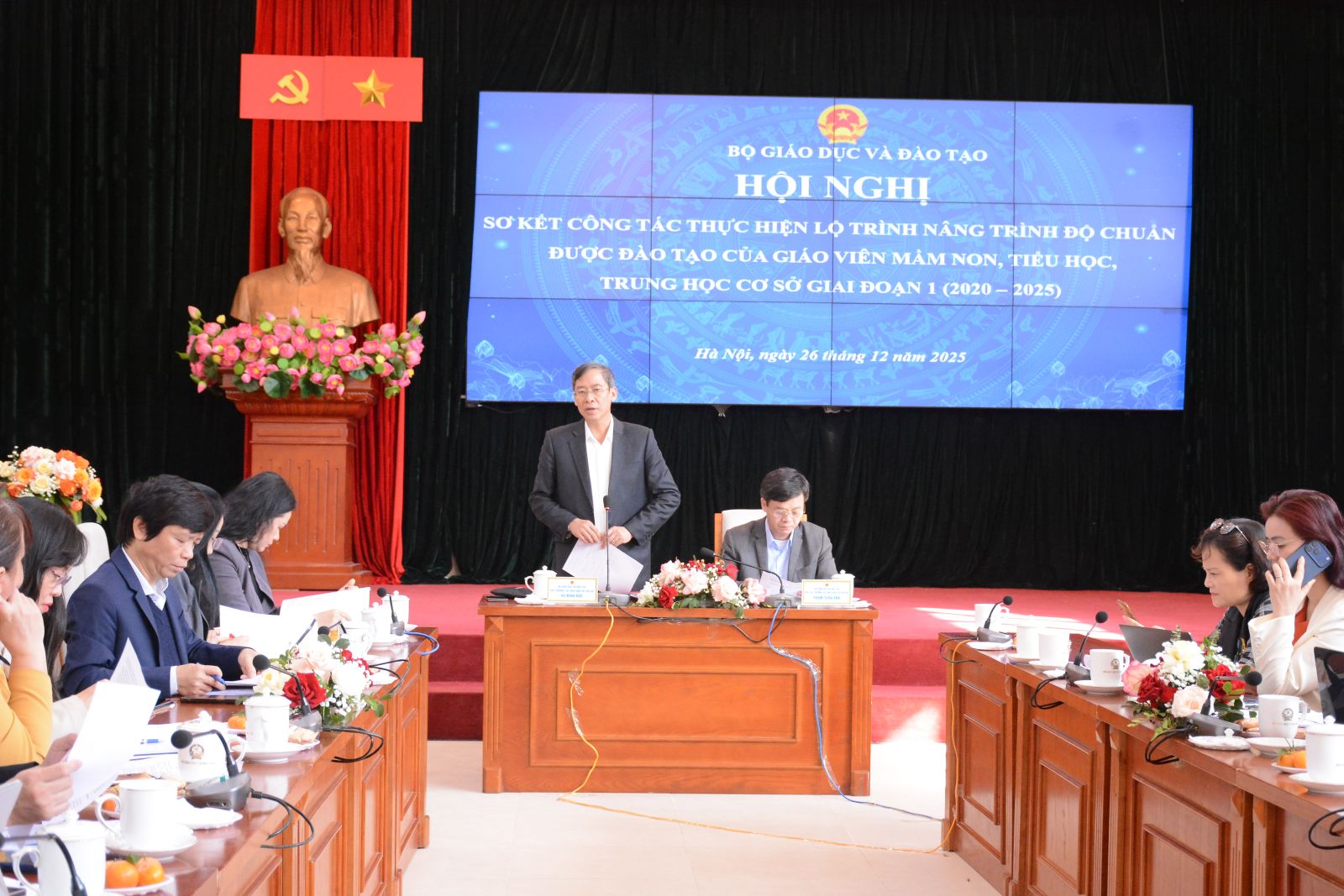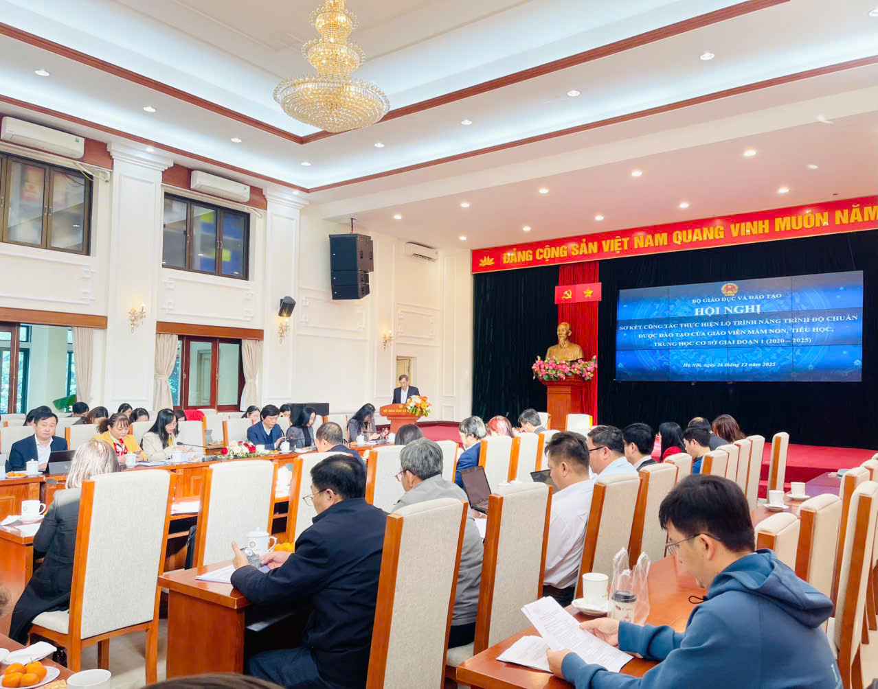 Ngày 26/12, Bộ Giáo dục và Đào tạo (GDĐT) tổ chức hội nghị sơ kết công tác thực hiện lộ trình nâng trình độ chuẩn được đào tạo của giáo viên mầm non, tiểu học, trung học cơ sở giai đoạn I (2020 – 2025). Tham dự hội nghị có đại diện các đơn vị thuộc Bộ GDĐT, các sở GDĐT.