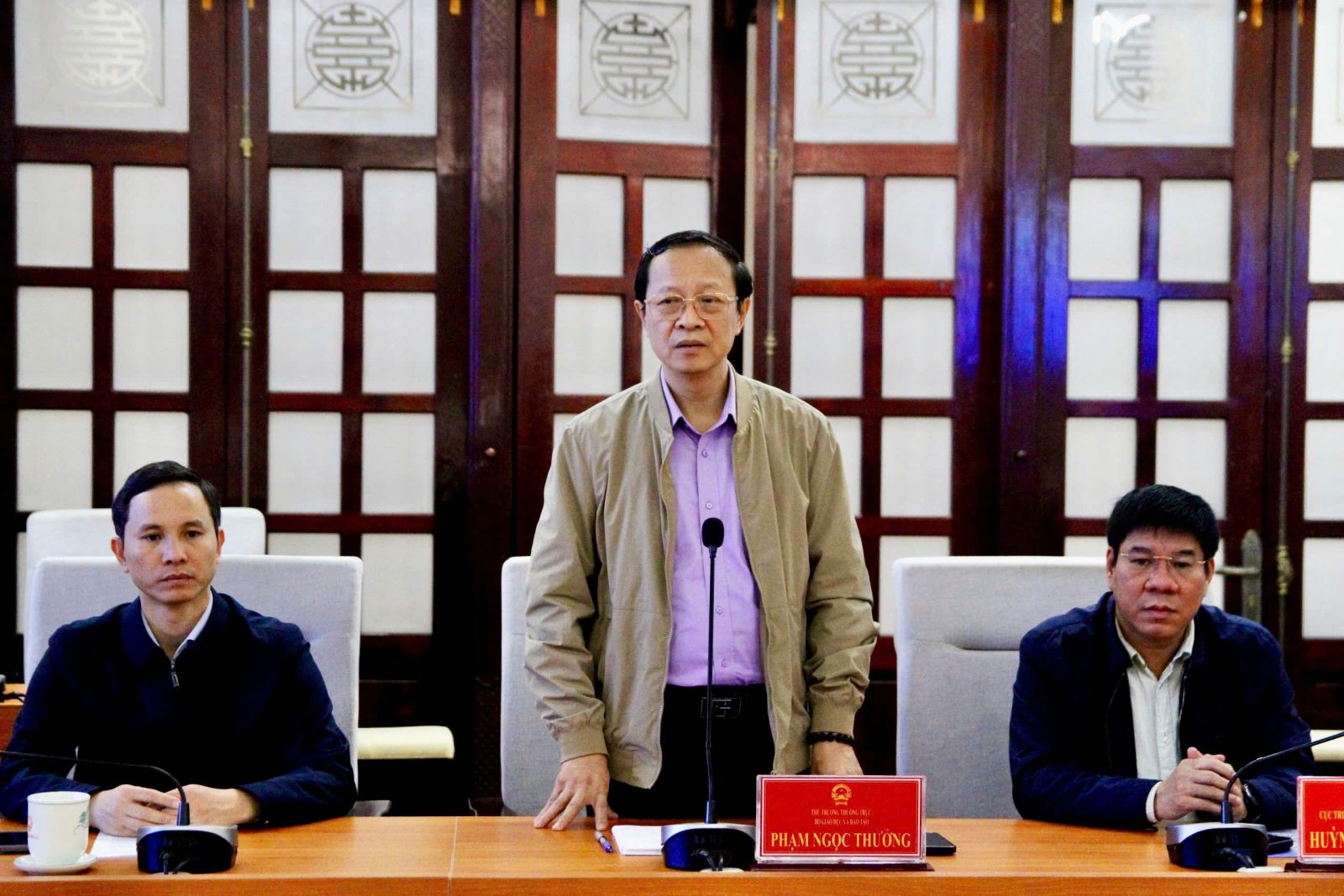 Thay mặt lãnh đạo Bộ GDĐT, Thứ trưởng Thường trực Phạm Ngọc Thưởng chia sẻ sâu sắc với những mất mát, thiệt hại của thành phố Huế và ngành Giáo dục do đợt bão lũ vừa qua. Thứ trưởng cũng ghi nhận, đánh giá cao tinh thần chủ động, trách nhiệm của ngành Giáo dục thành phố Huế, đội ngũ cán bộ, giáo viên trong công tác ứng phó, khắc phục hậu quả mưa lũ, chủ động đưa học sinh trở lại trường học và thực hiện các phương án dạy học trực tuyến phù hợp.