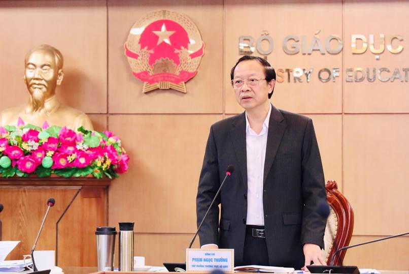 Chủ trì hội nghị tại điểm cầu Bộ GDĐT là Thứ trưởng Thường trực Phạm Ngọc Thưởng.