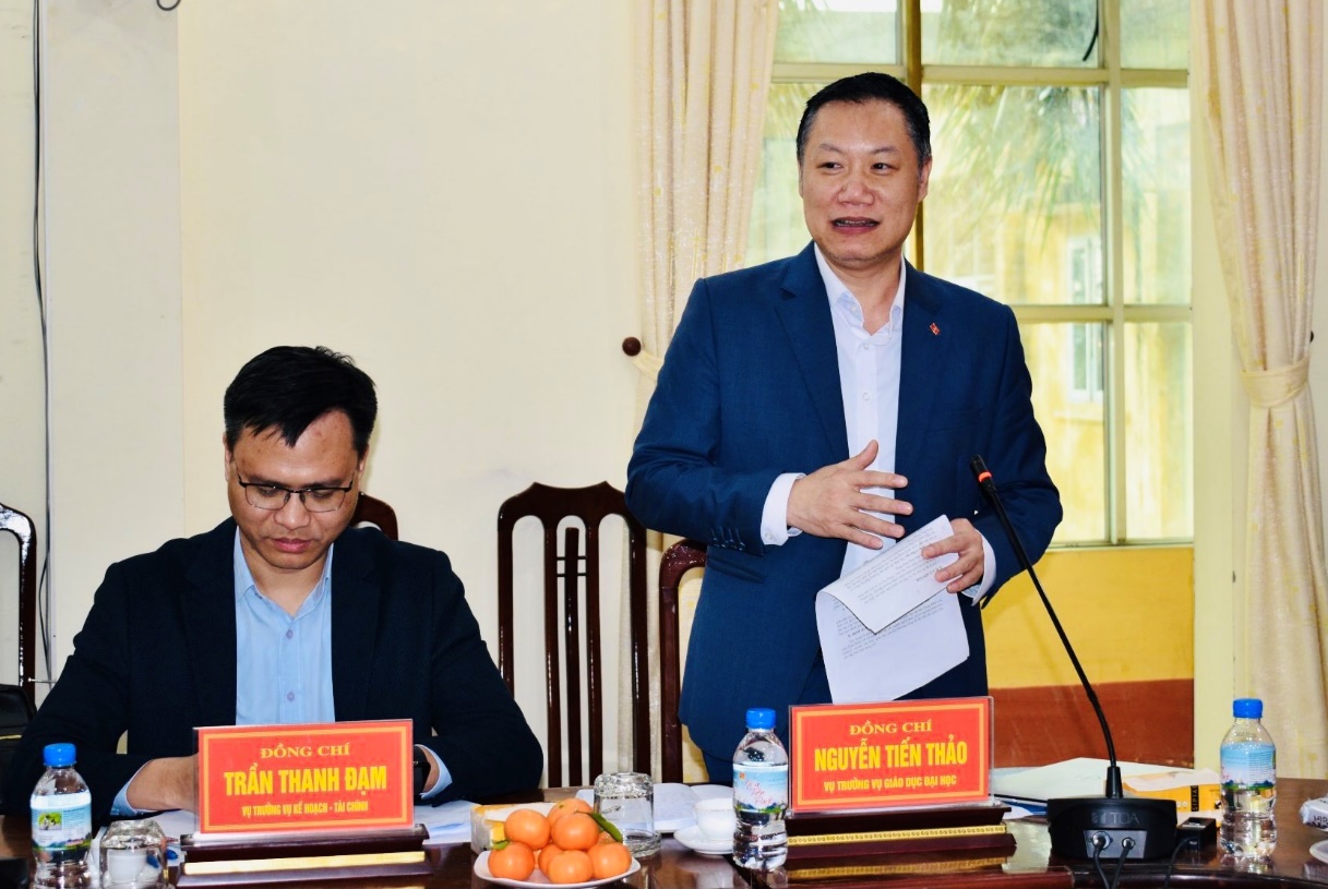 Vụ trưởng Vụ Giáo dục Đại học Nguyễn Tiến Thảo trao đổi tại buổi làm việc