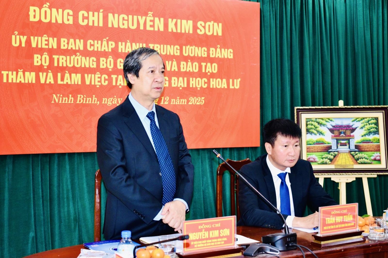 Tiếp thu các ý kiến chỉ đạo của Bộ trưởng Nguyễn Kim Sơn, ông Trần Huy Tuấn, Phó Bí thư Tỉnh ủy, Chủ tịch UBND tỉnh Ninh Bình, nhấn mạnh tỉnh cam kết sẽ quan tâm đầu tư cho Trường Đại học Hoa Lư, đặc biệt là về cơ sở vật chất và chính sách thu hút nguồn nhân lực chất lượng cao.