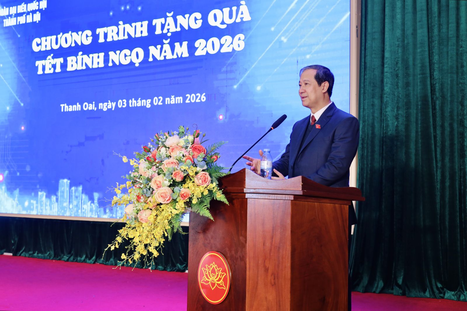 Trong khuôn khổ chương trình, Bộ trưởng Nguyễn Kim Sơn đã trao tặng 20 phần quà tới 20 gia đình có hoàn cảnh đặc biệt khó khăn trên địa bàn xã Thanh Oai. Đây không chỉ là sự hỗ trợ về vật chất mà còn là nguồn động viên tinh thần, thể hiện sự quan tâm, sẻ chia và trách nhiệm của các đại biểu Quốc hội đối với Nhân dân, góp phần động viên các gia đình vượt qua khó khăn, an tâm đón một mùa Xuân mới ấm áp, nghĩa tình.