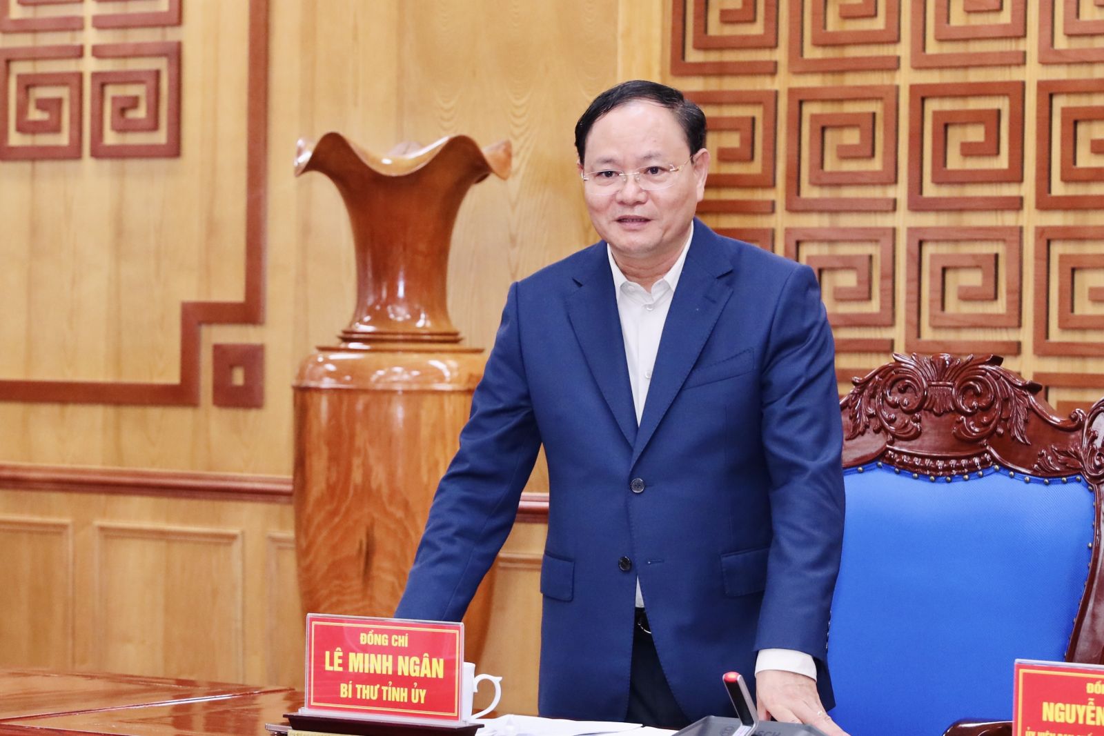 Bí thư Tỉnh ủy Lai Châu Lê Minh Ngân trao đổi tại buổi làm việc