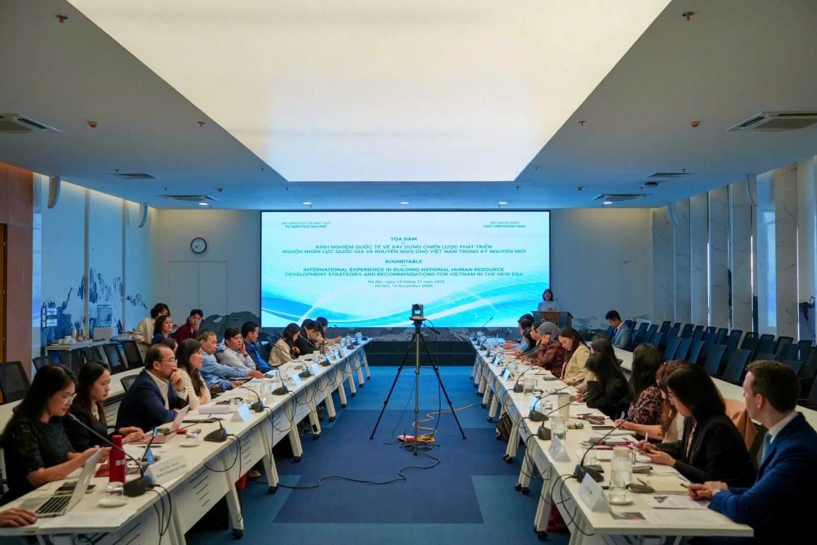 Ngày 14/11, tại Hà Nội, Vụ Giáo dục Đại học - Bộ Giáo dục và Đào tạo (GDĐT) phối hợp với Học viện Ngoại giao tổ chức Tọa đàm “Chia sẻ kinh nghiệm quốc tế về xây dựng chiến lược phát triển nguồn nhân lực quốc gia và khuyến nghị cho Việt Nam trong kỷ nguyên mới”.