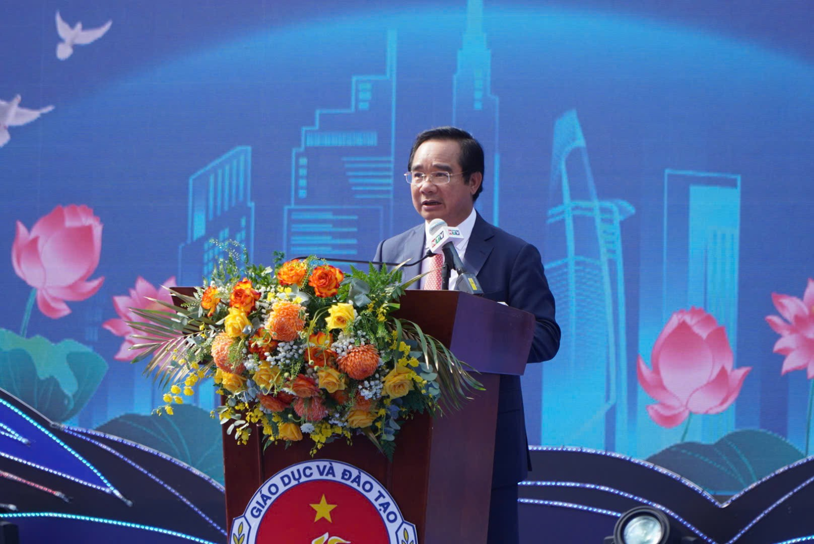 Tiếp nối buổi lễ, ông Nguyễn Văn Được – Chủ tịch UBND TP. Hồ Chí Minh gửi lời cảm ơn tới lãnh đạo Bộ GDĐT và nhấn mạnh: “Thầy cô giáo chính là mạch nguồn nuôi dưỡng trí tuệ, là rường cột vững chắc cho sự phát triển bền vững của Thành phố”.