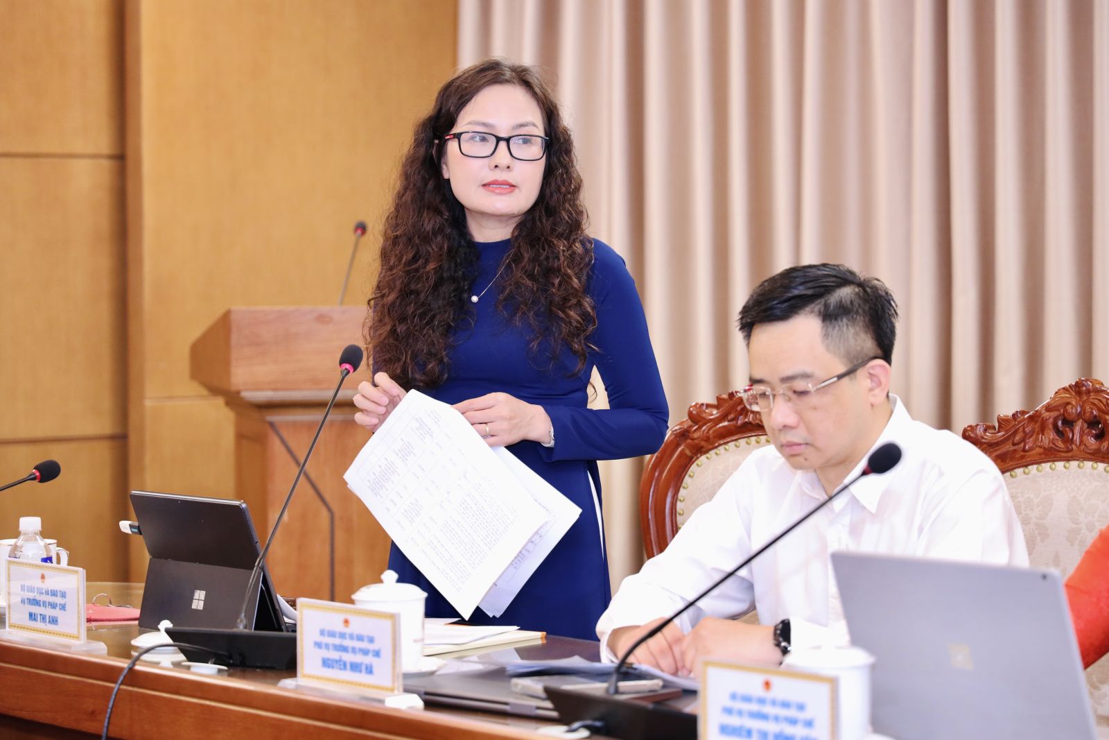 Vụ trưởng Vụ Pháp chế Mai Thị Anh trao đổi một số thông tin tại hội nghị