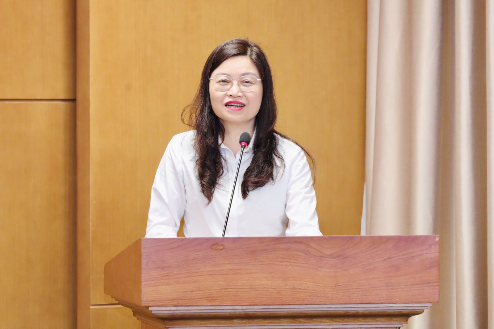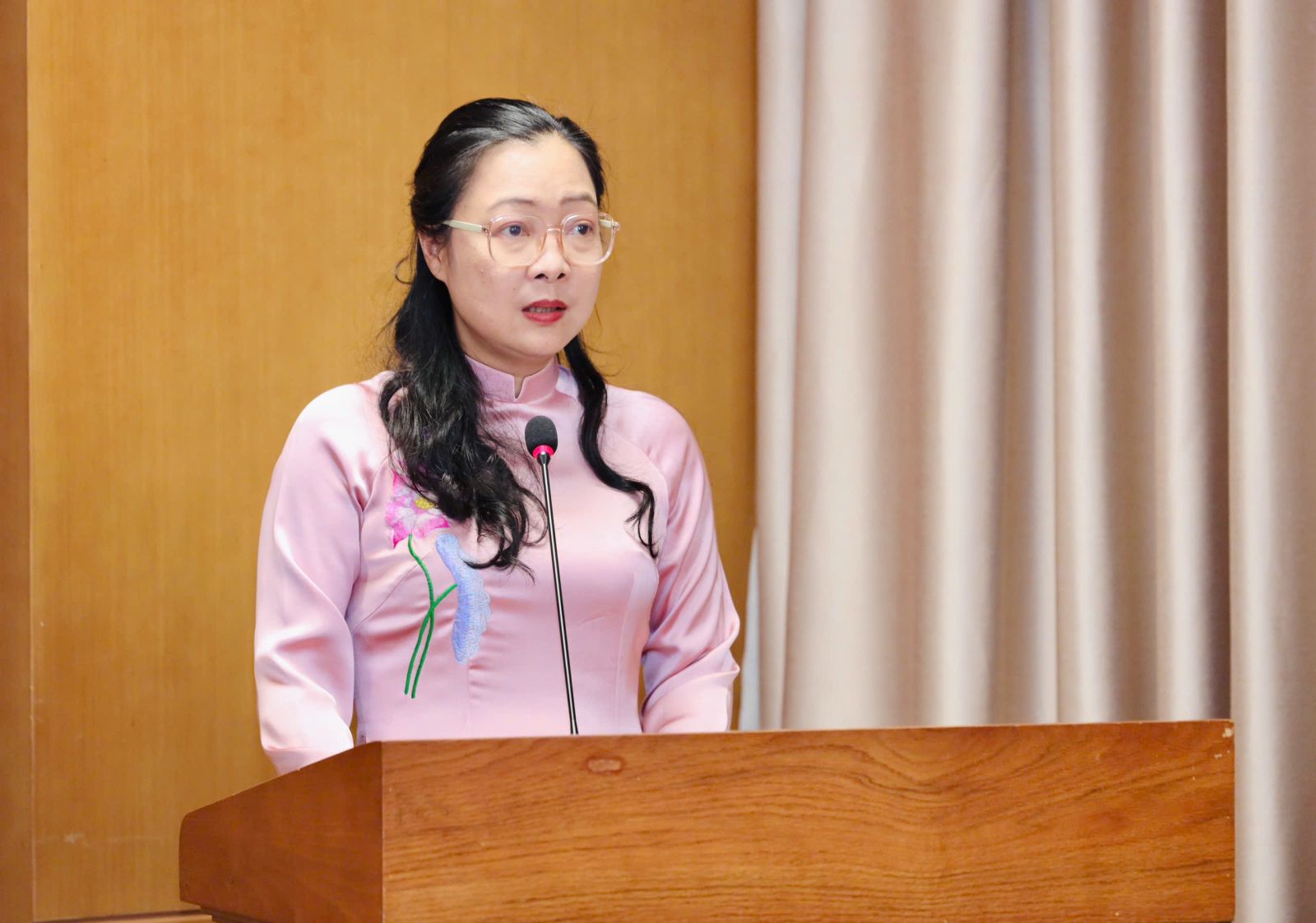 Phó Vụ trưởng Vụ Tổ chức cán bộ Nguyễn Thị Hạnh trình bày chuyên đề tại hội nghị