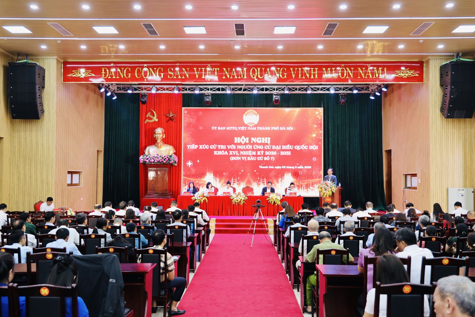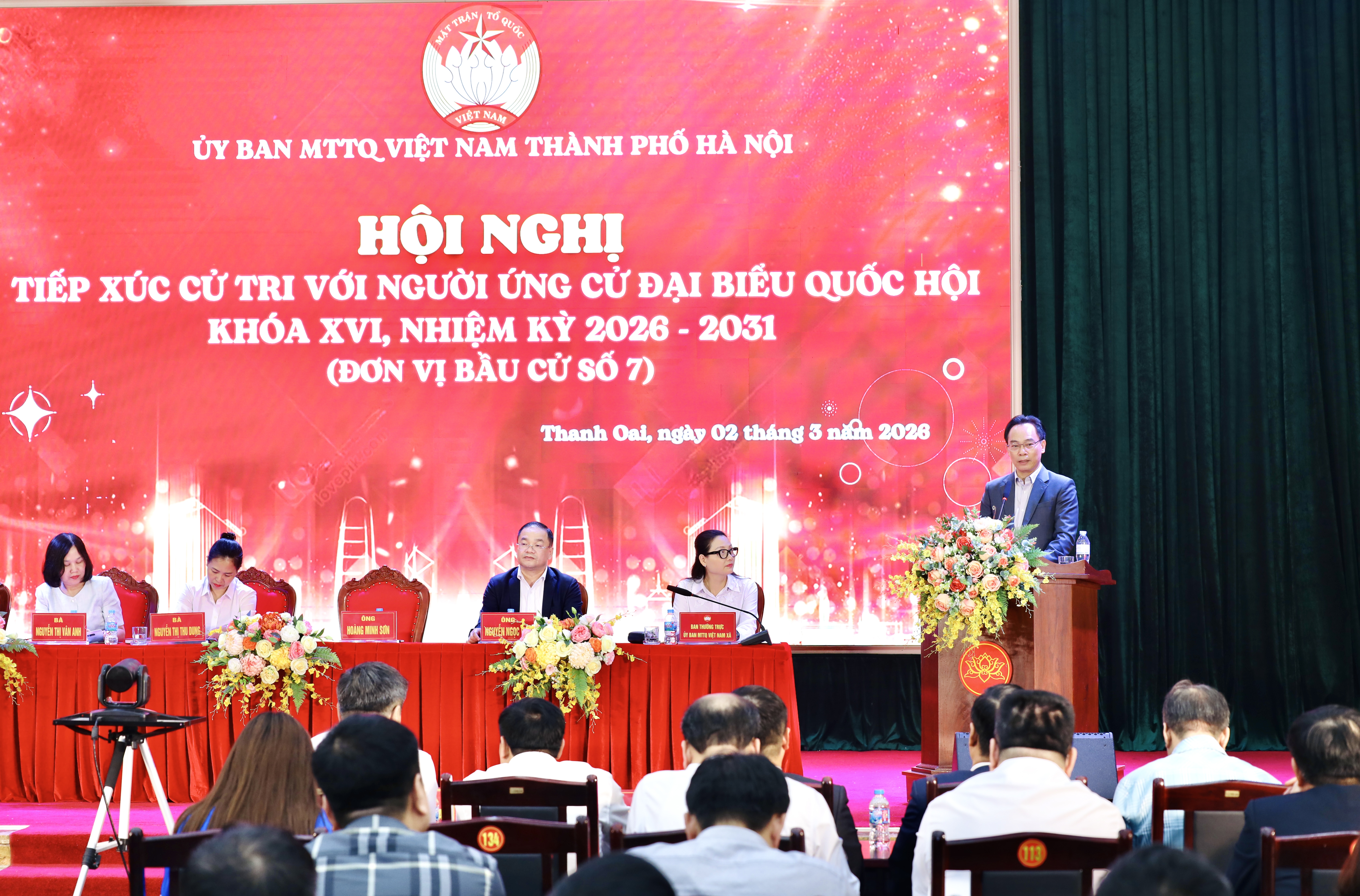 Chiều 2/3, tại xã Thanh Oai, Thành phố Hà Nội, Ban Thường trực Ủy ban Mặt trận Tổ quốc Việt Nam xã Thanh Oai phối hợp với các cơ quan, đơn vị liên quan tổ chức Hội nghị tiếp xúc cử tri với người ứng cử đại biểu Quốc hội khóa XVI, nhiệm kì 2026–2031 (Đơn vị bầu cử số 7).