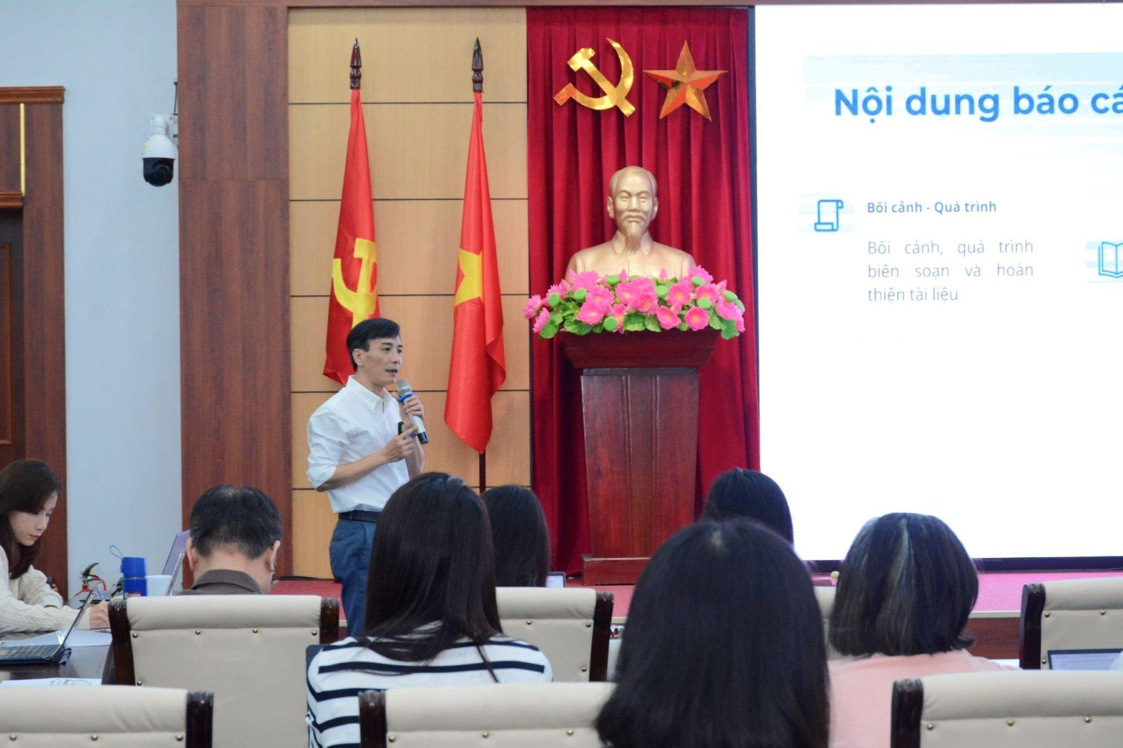 ThS. Lý Quốc Biên, Trung tâm Nghiên cứu Phát triển chương trình và Đánh giá giáo dục (VNIES), giới thiệu tài liệu đến hội thảo