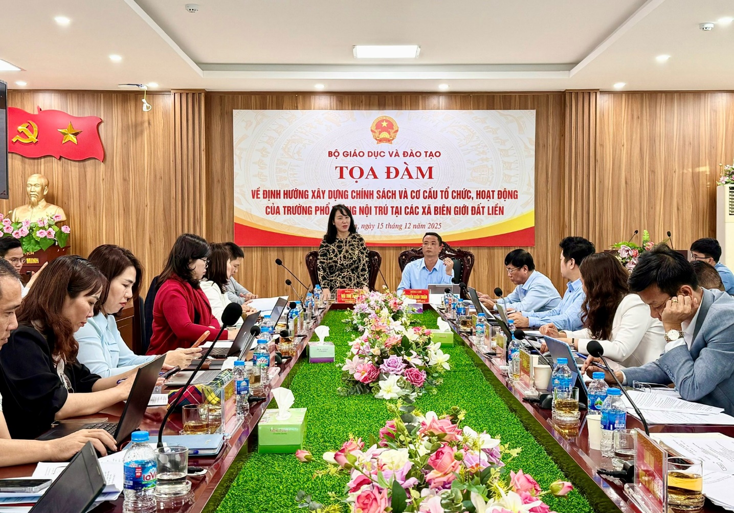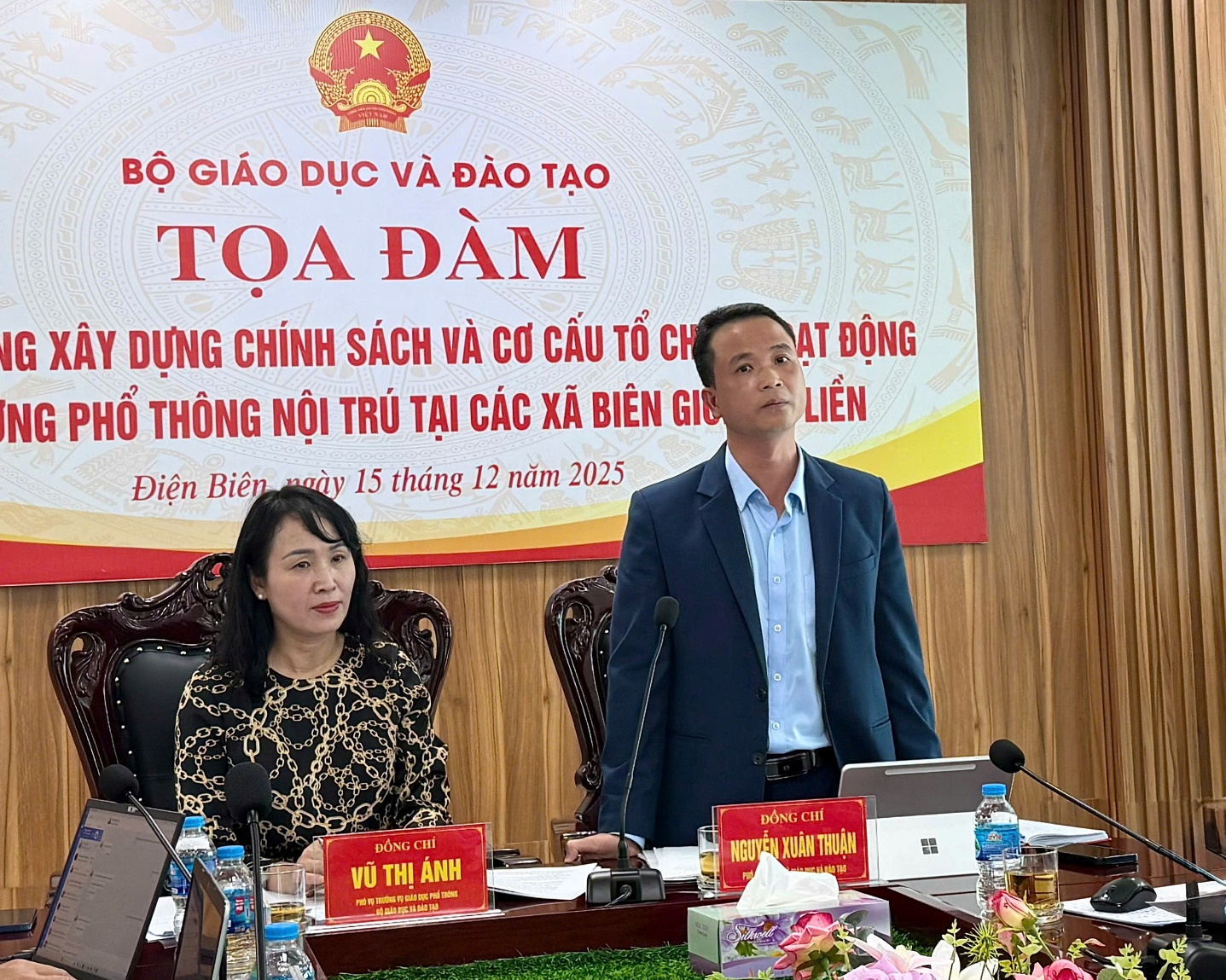 Toạ đàm có sự tham dự của lãnh đạo, chuyên viên một số đơn vị thuộc Bộ GDĐT; lãnh đạo Sở, lãnh đạo, chuyên viên các phòng chuyên môn của Sở GDĐT Điện Biên; lãnh đạo một số xã biên giới của tỉnh Điện Biên được thụ hưởng chủ trương đầu tư xây dựng trường phổ thông nội trú tại các xã biên giới đất liền và cán bộ quản lý, giáo viên một số cơ sở giáo dục thuộc các xã biên giới.