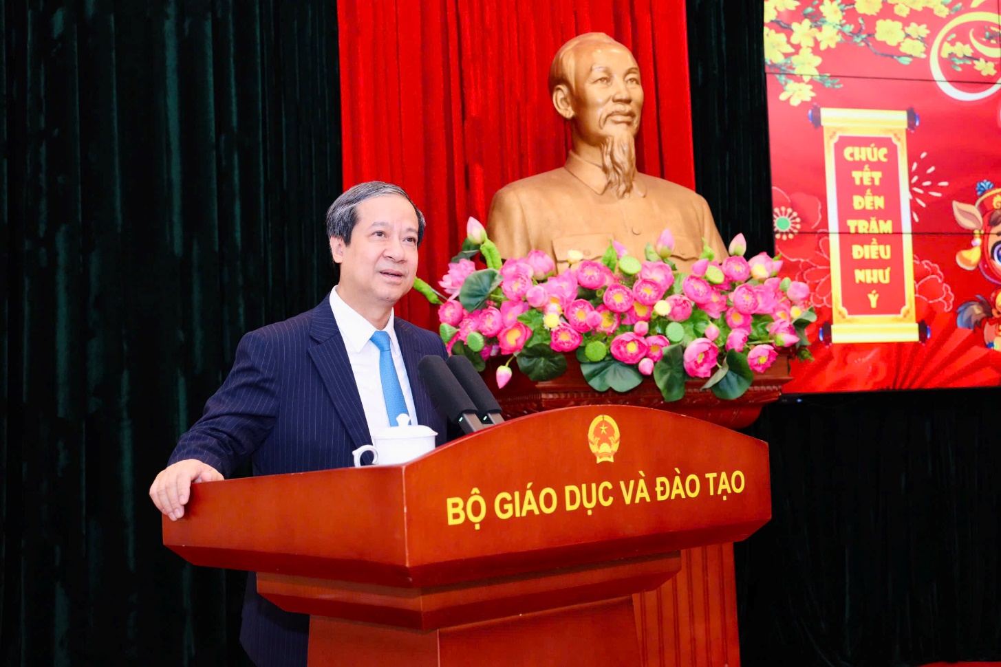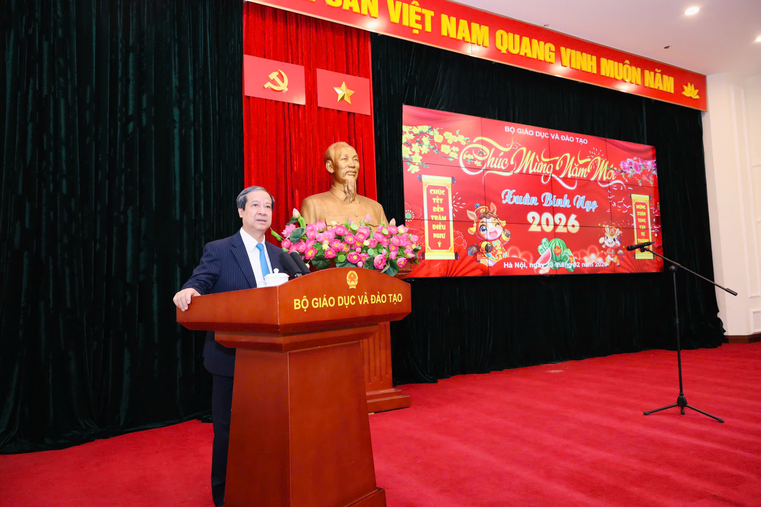 Nhân dịp năm mới, Bộ trưởng gửi lời cảm ơn, chúc toàn thể cán bộ, công chức, viên chức, người lao động và gia đình sức khỏe, bình an; mong muốn mỗi cá nhân tiếp tục gắn bó, sẻ chia, đồng hành cùng nhau, góp phần xây dựng tập thể Bộ GDĐT đoàn kết, vững mạnh.