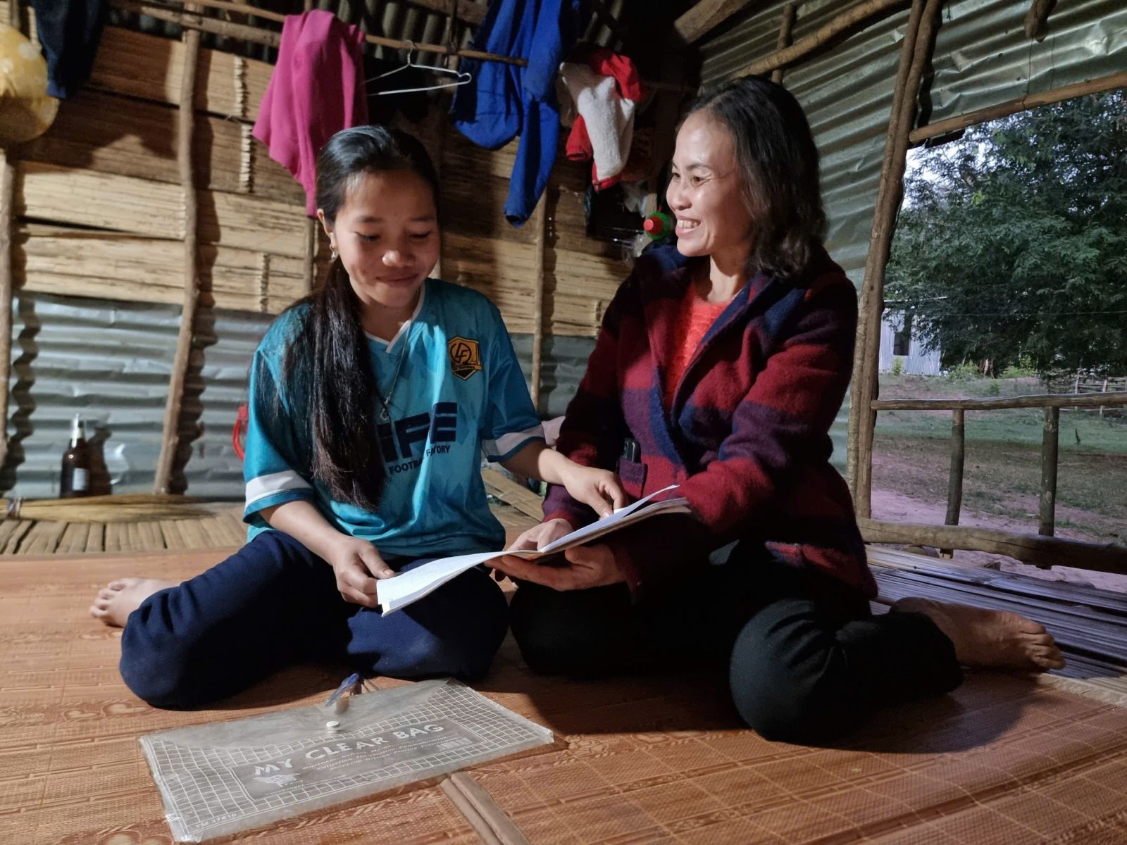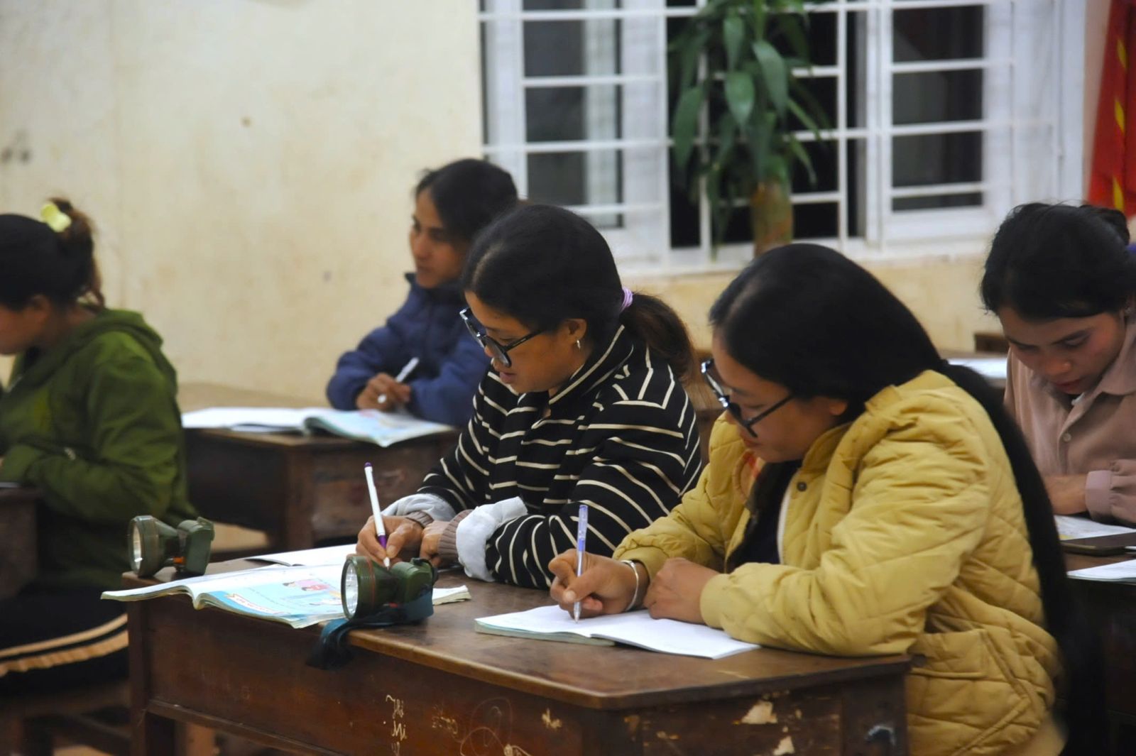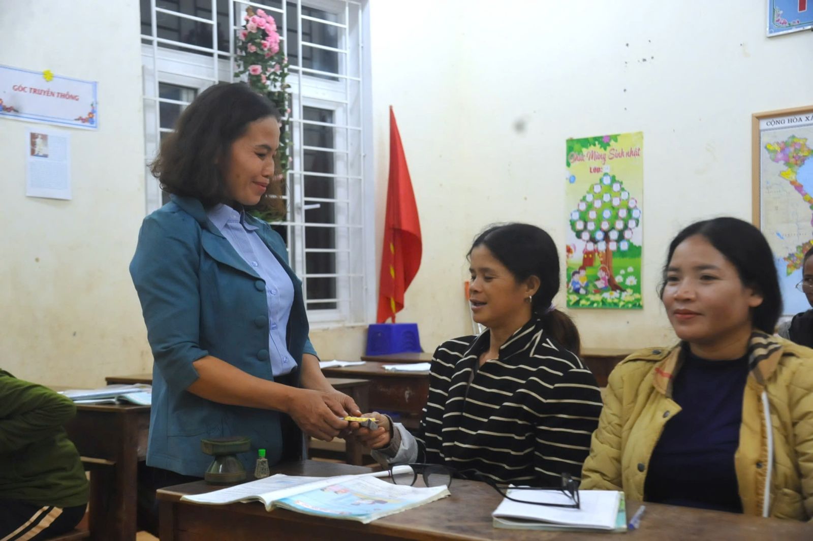 Trong lớp học ấy, có chị Hồ Thị Mai, người Lào lấy chồng Việt Nam. Không biết tiếng Việt, nhiều năm chị chỉ quanh quẩn trong thôn, ngại giao tiếp. Từ khi lớp xóa mù chữ mở, tối nào chị cũng đội đèn pin đi gần hai cây số đến học. “Cứ tối đến là cả thôn gọi nhau đi học, vui lắm,” chị kể.