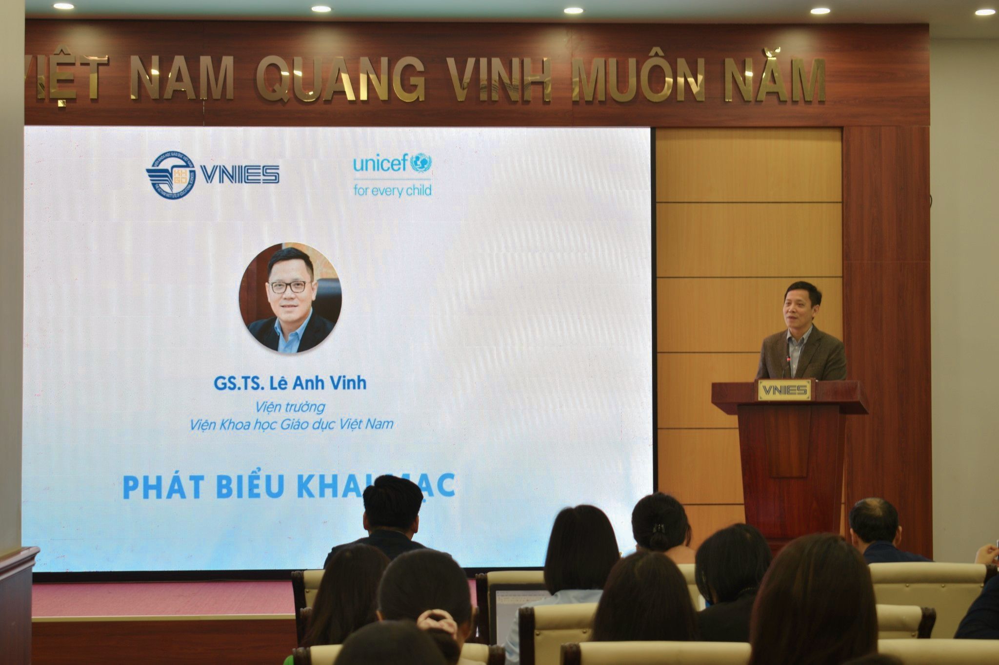GS.TS Lê Anh Vinh, Viện trưởng Viện Khoa học Giáo dục Việt Nam (VNIES), phát biểu khai mạc hội thảo