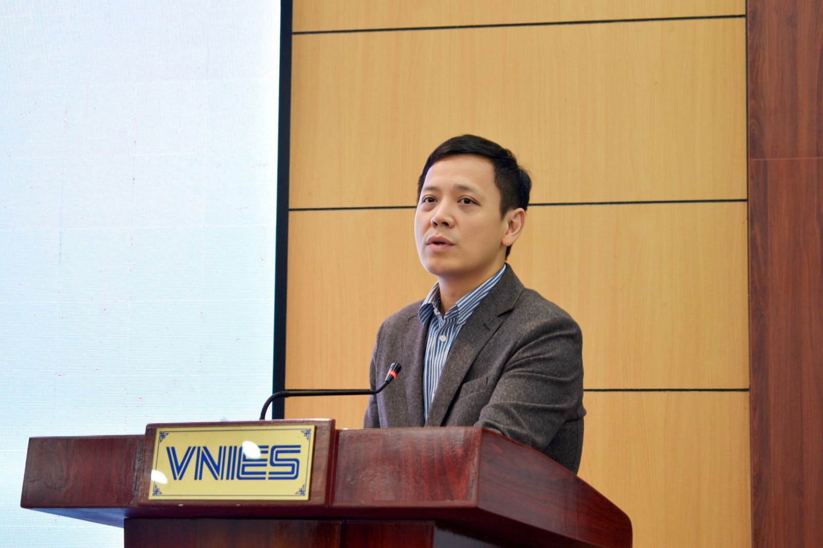 Ông Đỗ Đức Lân, Phó Giám đốc phụ trách Trung tâm Hợp tác phát triển, Viện Khoa học Giáo dục Việt Nam, trình bày tham luận tại Hội thảo