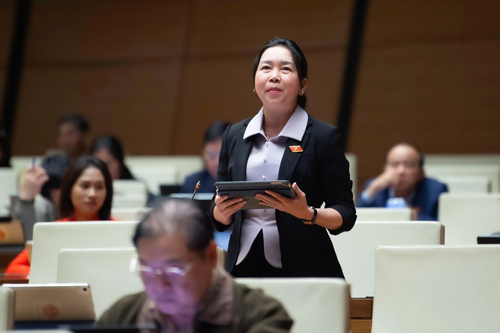 Đại biểu Lý Tiết Hạnh - Đoàn ĐBQH tỉnh Gia Lai phát biểu tại Hội trường