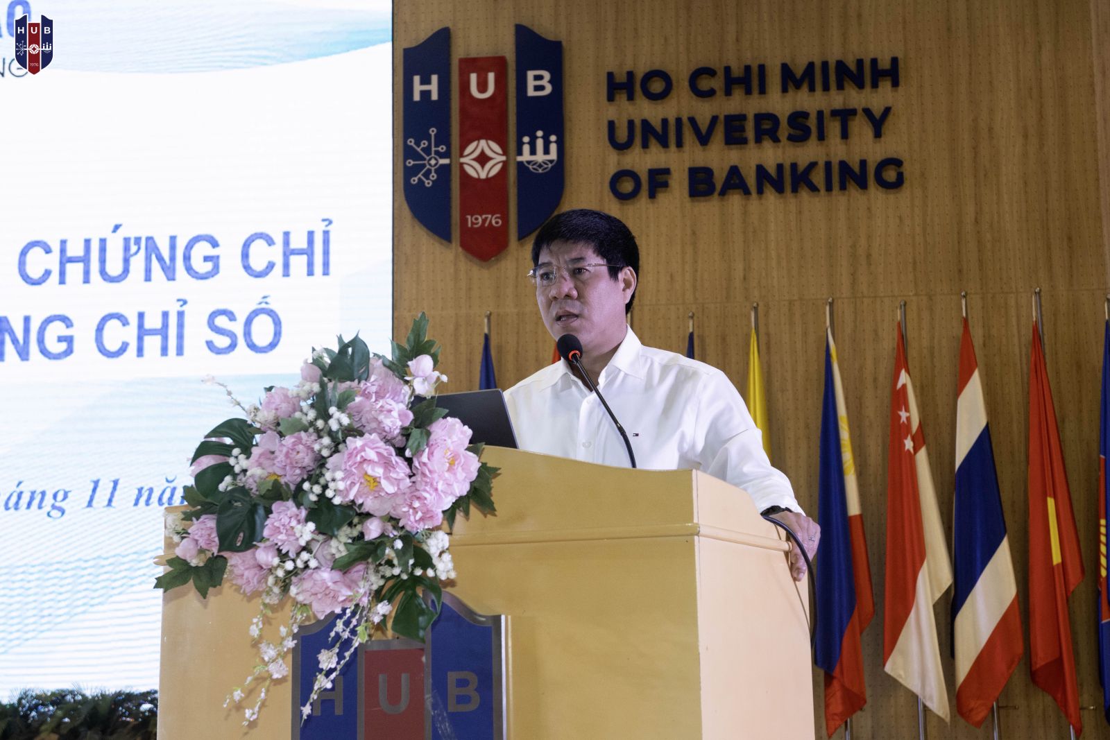 Phát biểu tại Hội thảo, PGS.TS Nguyễn Đức Trung – Hiệu trưởng Trường Đại học Ngân hàng TP. Hồ Chí Minh cho biết, trong bối cảnh chuyển đổi số, việc triển khai văn bằng số, chứng chỉ số là hết sức cấp thiết; HUB thời gian qua đã chủ động ứng dụng công nghệ, là đơn vị tiên phong đào tạo và cấp Chứng nhận năng lực AI cho sinh viên và cán bộ nhiều đơn vị.