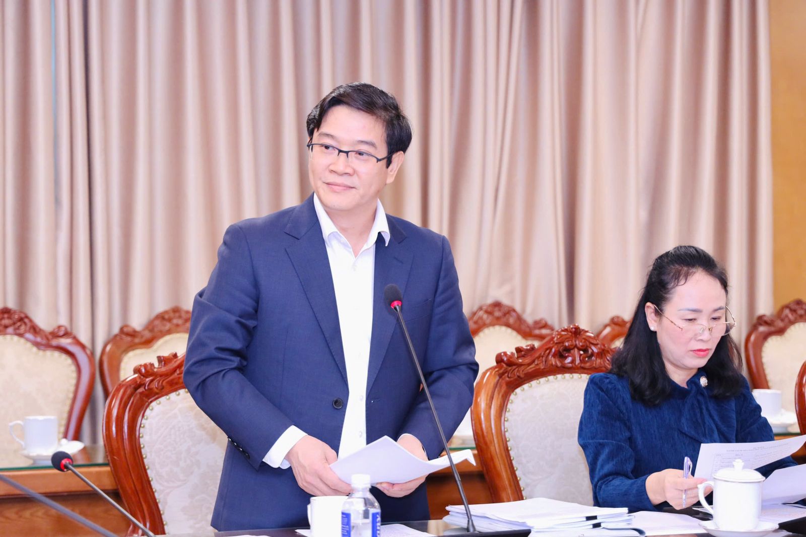 Vụ trưởng Vụ Giáo dục Phổ thông trình bày báo cáo tại hội nghị
