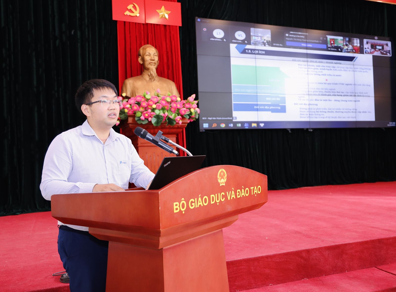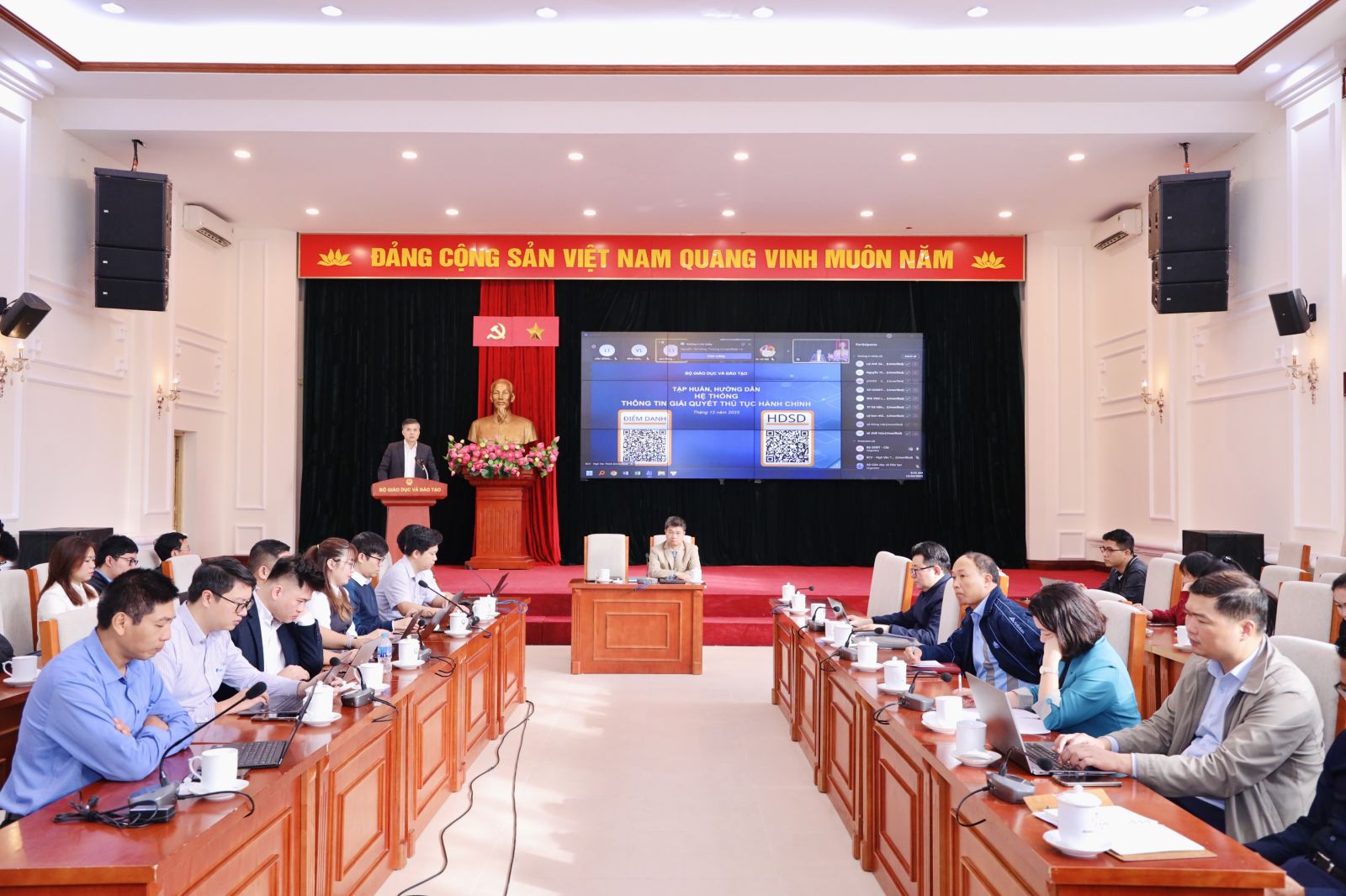 Tham dự tại điểm cầu Bộ GDĐT có lãnh đạo, chuyên viên các đơn vị thuộc Bộ.