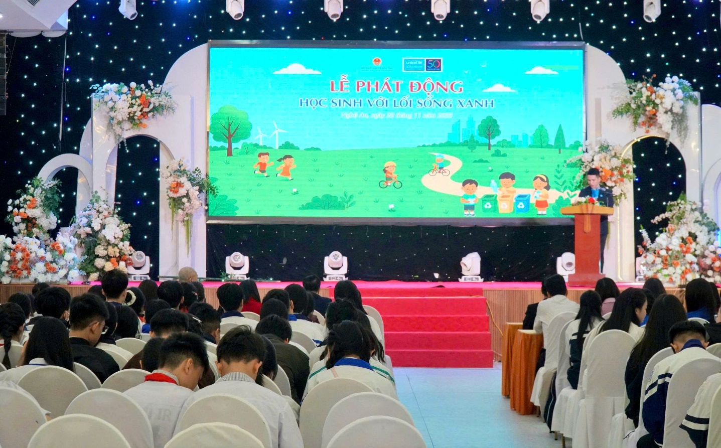Tại Lễ phát động và Hội thảo “Học sinh với lối sống xanh”, 125 em học sinh đến từ 25 trường THCS, THPT trên địa bàn tỉnh Nghệ An đã được giao lưu, thảo luận về vấn đề biến đổi khí hậu và môi trường, tổ chức các hoạt động hưởng ứng nhằm lan tỏa lối sống xanh trong cộng đồng. Các em cũng được chia sẻ các dự án, sáng kiến, mô hình sống xanh do chính các em thực hiện tại trường học hoặc nơi sinh sống với mong muốn nâng cao nhận thức, thúc đẩy sự tham gia của trẻ em, thanh thiếu niên Việt Nam nói riêng và của toàn xã hội nói chung trong hành trình chung tay giải quyết các thách thức môi trường và biến đổi khí hậu hiện nay.